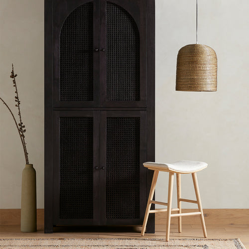 Modern and transitional, solid oak pairs with high-performance fabric in a light, neutral hue. Perfectly sized for the counter. Performance fabrics are specially created to withstand spills, stains, high traffic and wear, ensuring long-term comfort and unmatched durability.