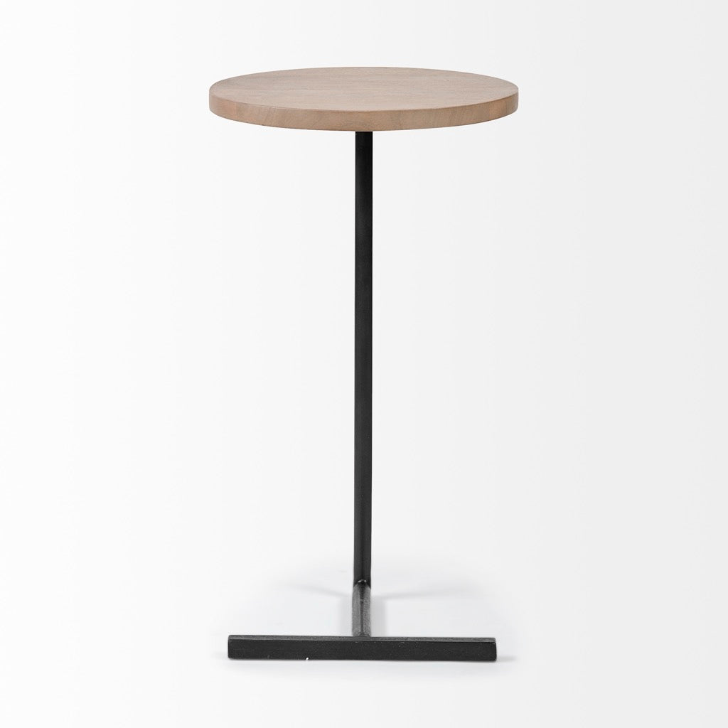 The Ballantine is a stylish accent table featuring a round, solid wood top braced by a sleek, solid iron base.