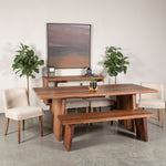 The Barcelona Dining Table is made from natural reclaimed wood, offering a rustic, eco-friendly design with unique wood grains. Its spacious surface and sturdy construction make it an inviting centerpiece for family meals and gatherings, while the natural finish adds warmth and character to any dining room.