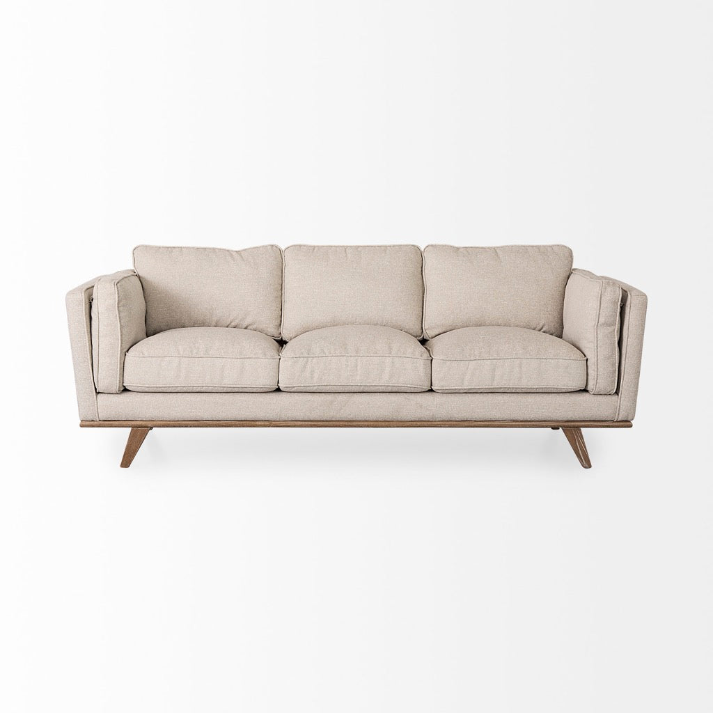 • Fabric Wrap: Brooks is wrapped in premium, soft oatmeal colored fabric, and offers unparalleled comfort and is guaranteed to have you lounging for hours. The fabric is finished in a light oatmeal color with medium brown wooden legs.