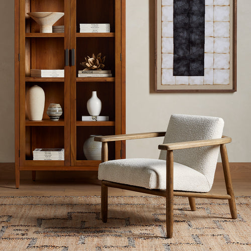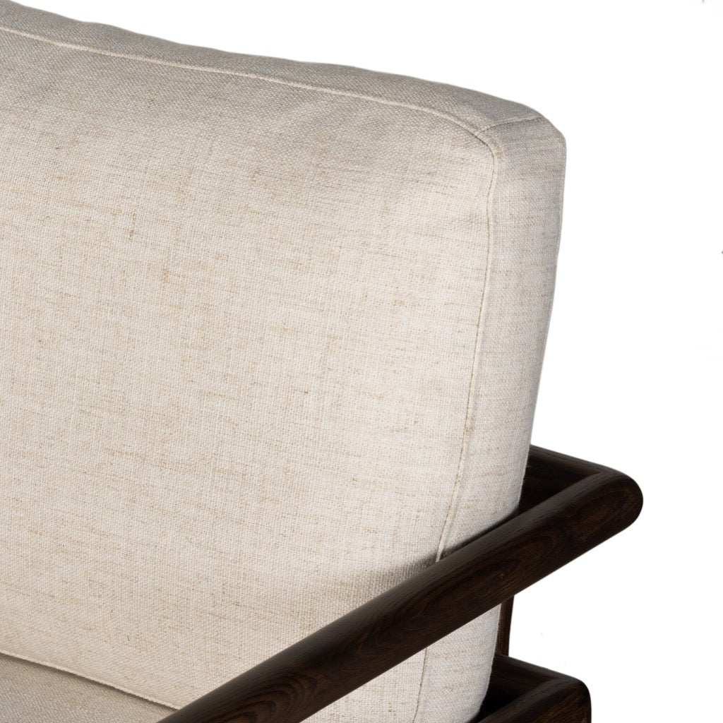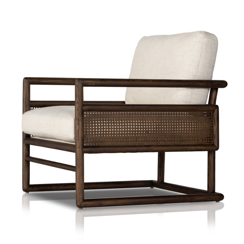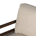 Midcentury inspiration meets calming zen vibes. Loose, plush feather-blend cushions are covered in a neutral linen fabric. Features woven cane panels amid open, rounded framing.