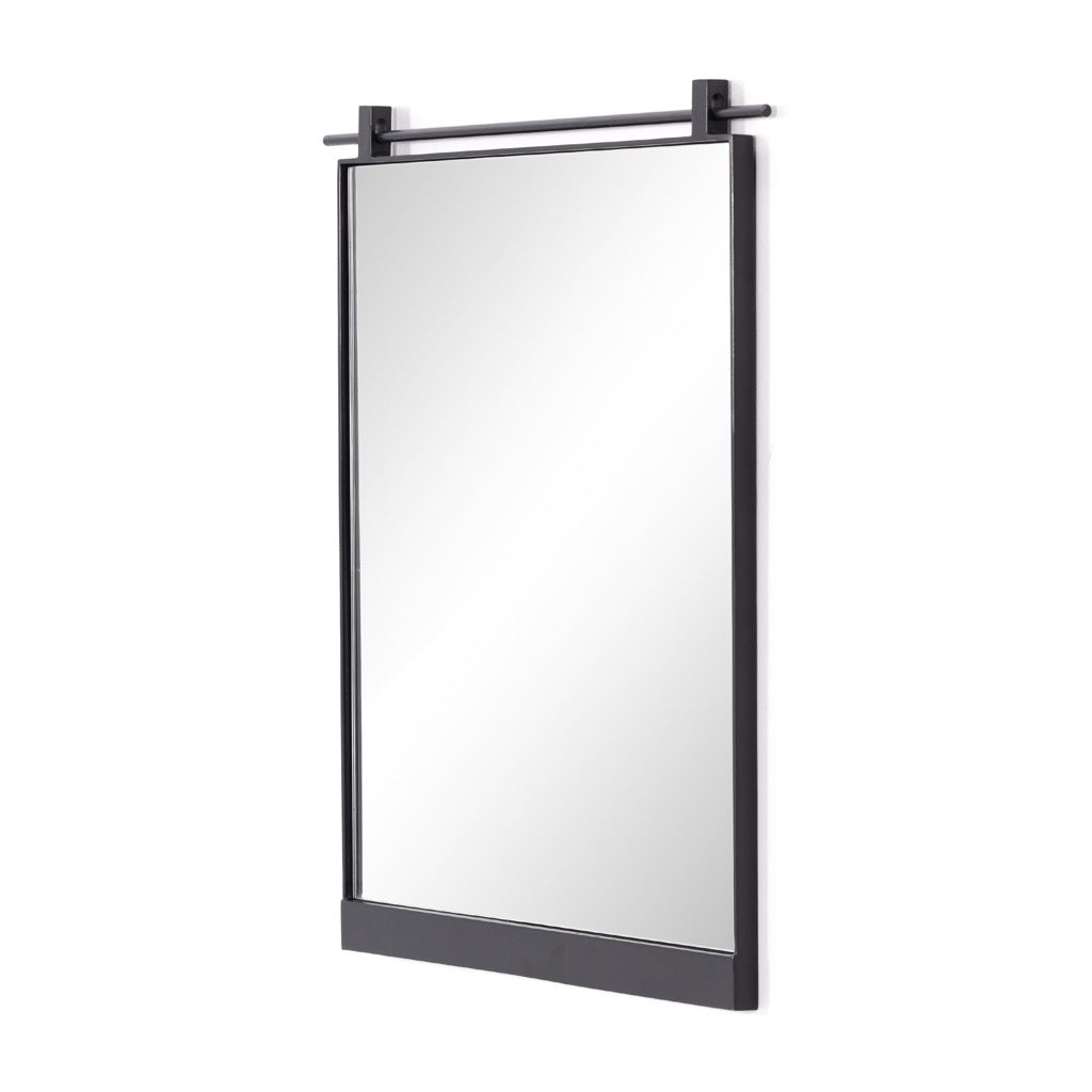 A slim antique iron bar suspends a simple square for a streamlined look with modern-minimalist allure. Posterior cleat for secure hanging.
