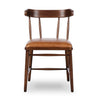 Made from solid ash with a vintage finish, this versatile dining chair pairs an airy back with tapered spindles, for a simple, inviting look. Fixed upholstered seat of top-grain leather adds a fresh, comfortable touch.