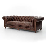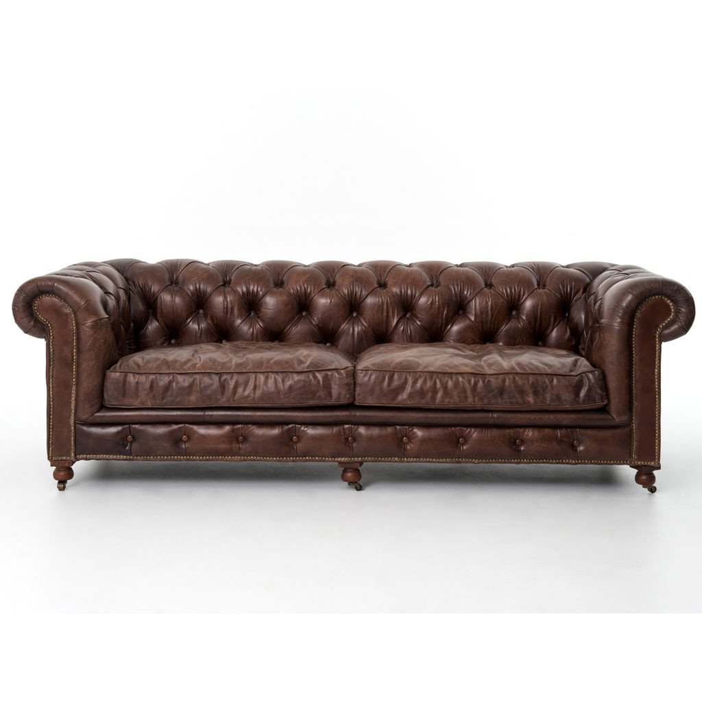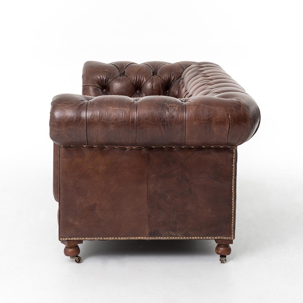 This dramatic Chesterfield sofa has a grand, men's club feel. The Cigar colored saddle-toned, top-grain leather is lovingly aged - an effect that will intensify beautifully in time.