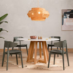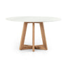 A beautifully fresh take on modern farmhouse. An open, angular base of light honey-finished oak supports a rounded tabletop of white marble, for a clean, versatile look great for everyday dining.