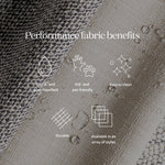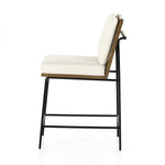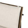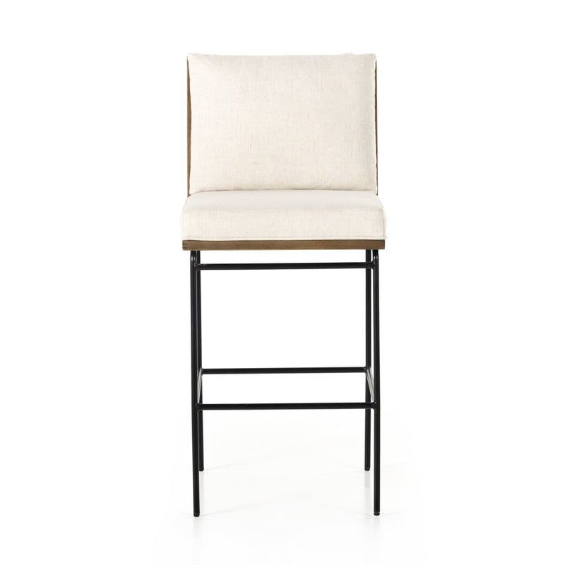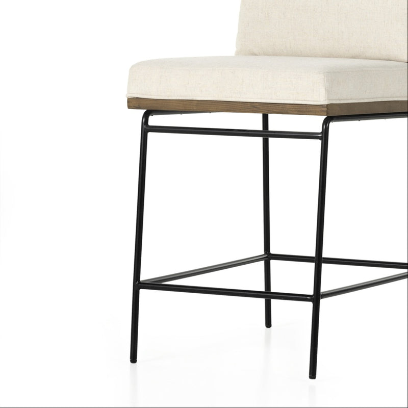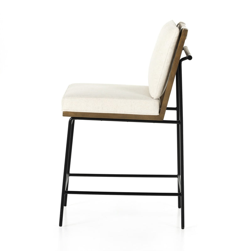 Crisp and clean, with natural panache. Slim, black-finished iron frames a floating ladderback of honey-finished oak and cream-colored high-performance seating. Rear handle detail adds a fashionable finishing touch. Performance fabrics are specially created to withstand spills, stains, high traffic and wear, ensuring long-term comfort and unmatched durability.