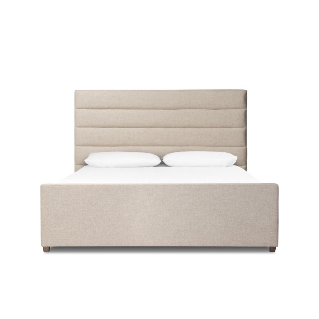 Horizontal channeling lends a linear, textured look to the neutral, high-performance fabric of this bed frame. Performance fabrics are specially created to withstand spills, stains, high traffic and wear, ensuring long-term comfort and unmatched durability.