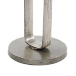 The rounded base and tabletop of raw antique nickel aluminum are connected via a shapely ring for an open look and fun blend of scale and proportion. Safe for outdoor spaces. Cover or store indoors during inclement weather and when not in use.