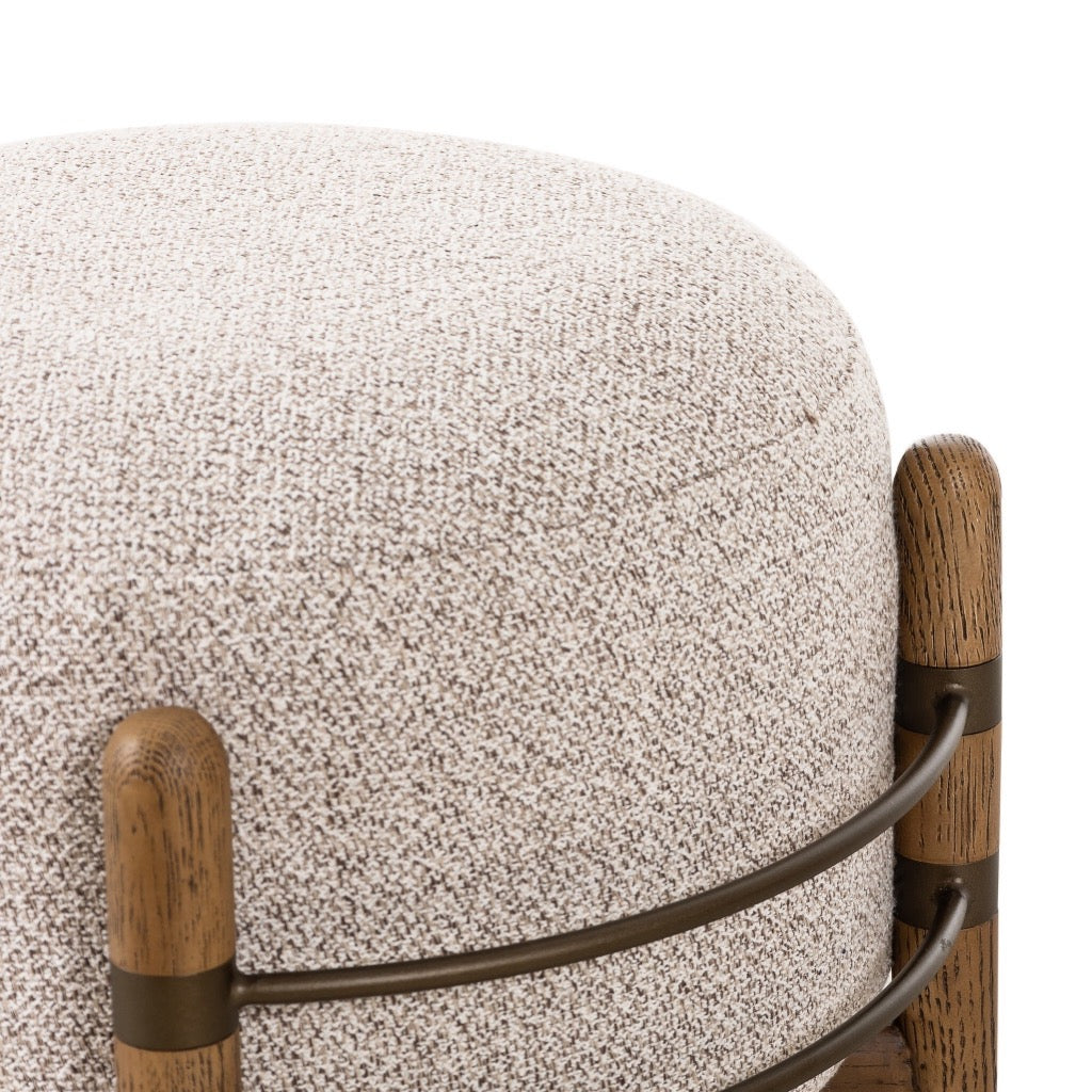 Accented by slim iron stretchers, solid oak legs form a cradle frame for this hip ottoman that feels fresh and vintage at once. Performance fabrics are specially created to withstand spills, stains, high traffic and wear, ensuring long-term comfort and unmatched durability.