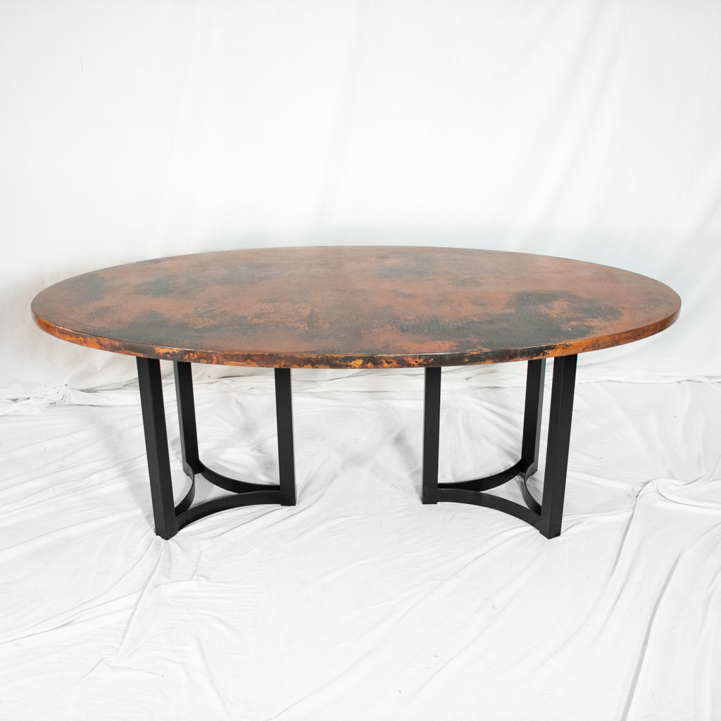 We can alter the shape, length, width, thickness, patina and substrate materials for our copper tabletops. As most of our copper tabletops and iron table bases are crafted on a made-to-order basis they can be customized to suit your needs and space.
