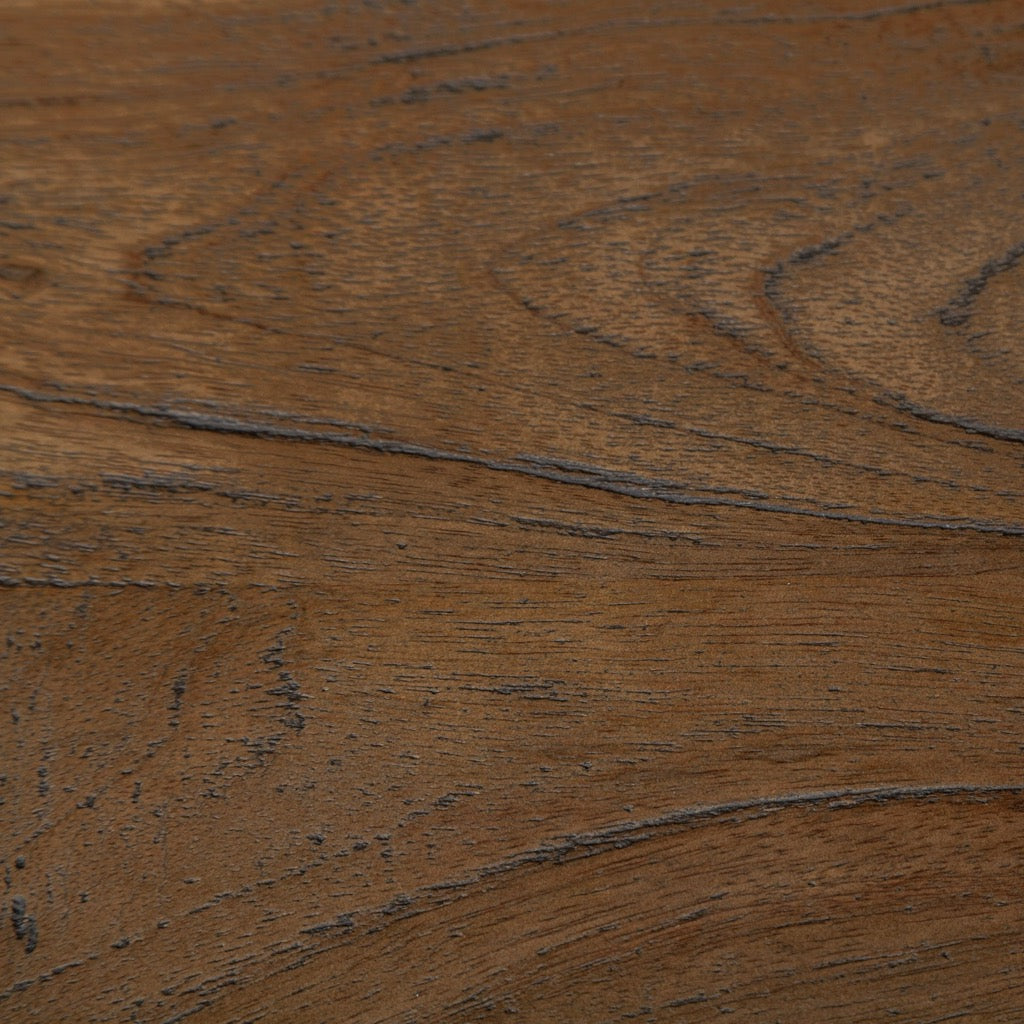 • Indian Mango Wood Seat: The Etienne flaunts a superior, medium-brown finished wooden seat with a metal frame finished in a gunmetal grey tone.