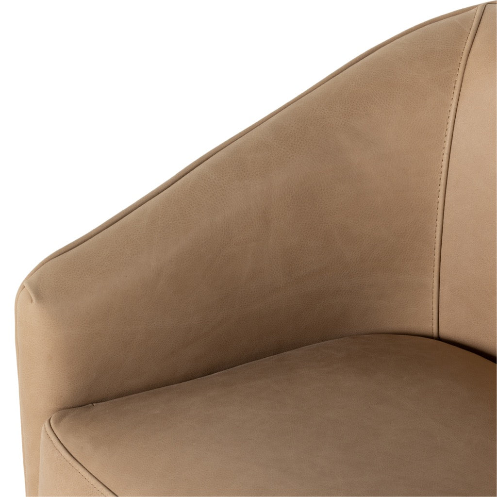 Well-tailored and stylistically unique, thick-cut nude top-grain leather lends a high-fashion feel to a cleverly constructed three-legged design, great for daily dining and dinner parties alike.