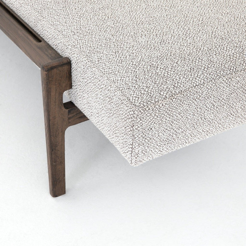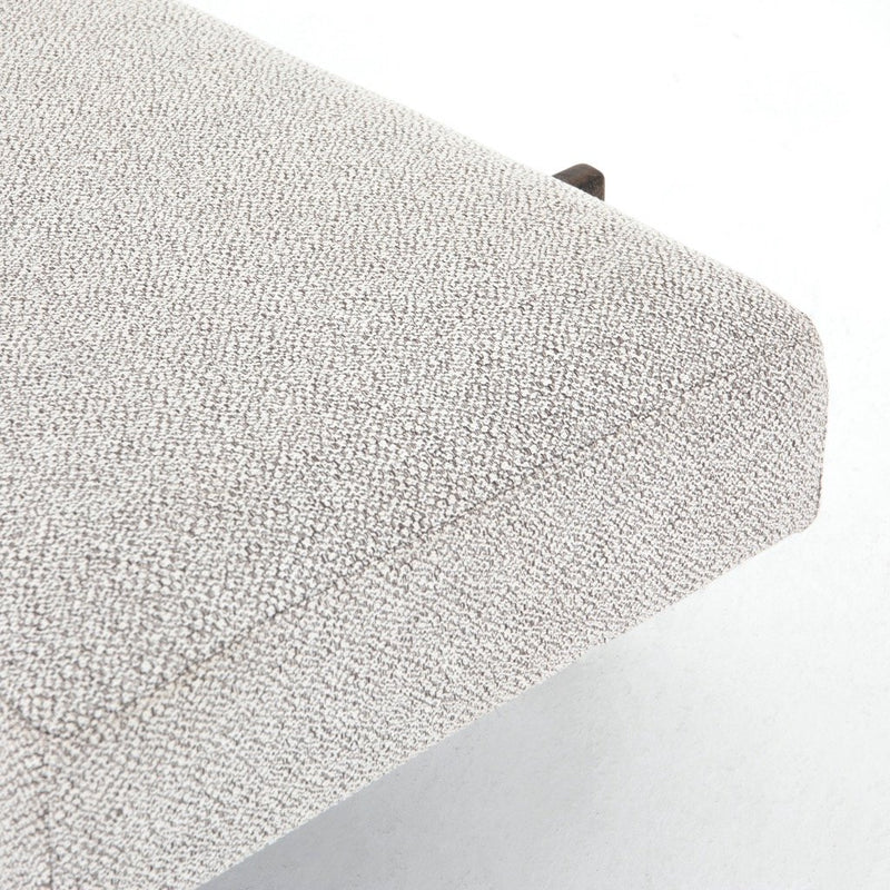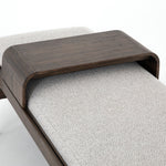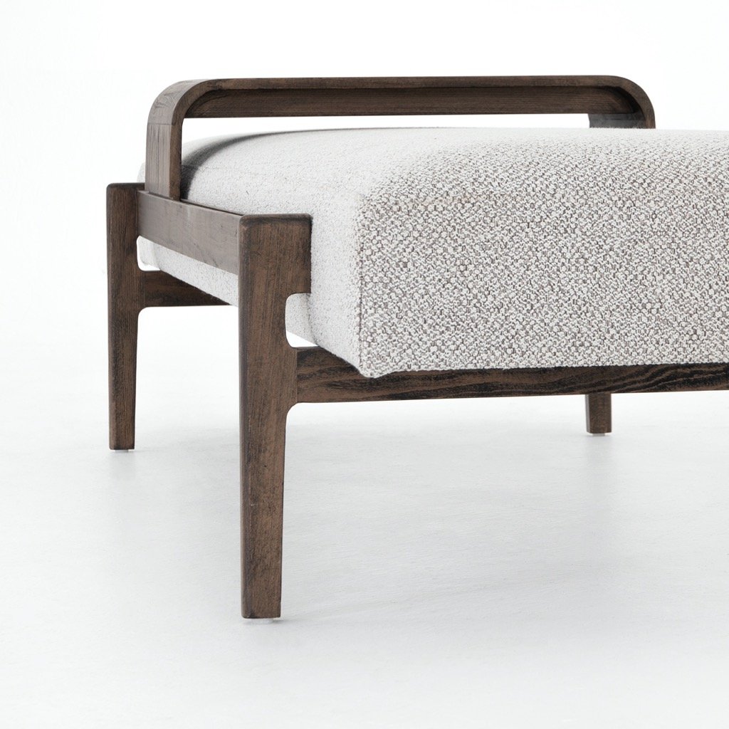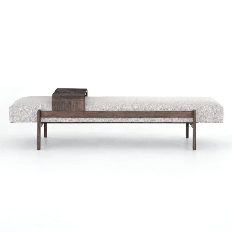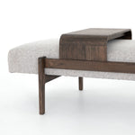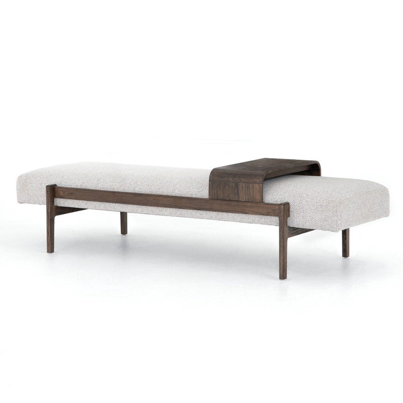 A uniquely modern statement piece inspired by the functional mid-century-style telephone bench, textural white-grey seating features a sliding tray of solid beechwood – the perfect place for a favorite book or cocktail. Great in the entryway or living room.
