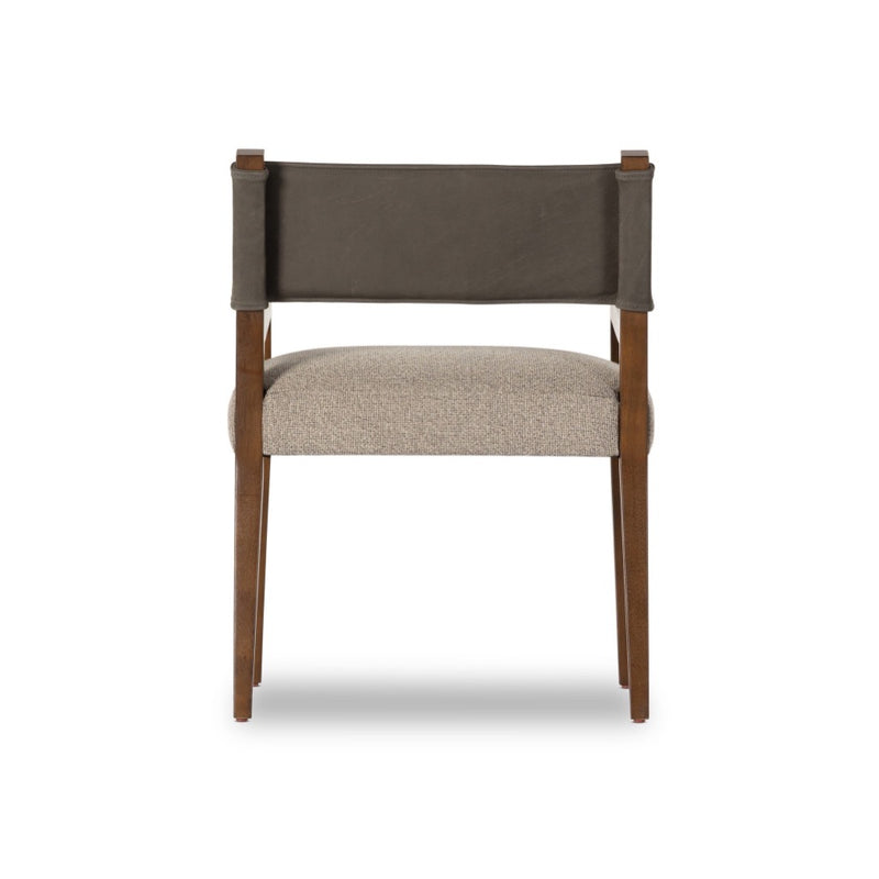 Mixed materials at their finest. Brown parawood frames squared seating of high-performance fabric. A top-grain leather back readies this modern-minded armchair for the head of the table. Performance fabrics are specially created to withstand spills, stains, high traffic and wear, ensuring long-term comfort and unmatched durability.