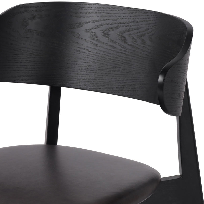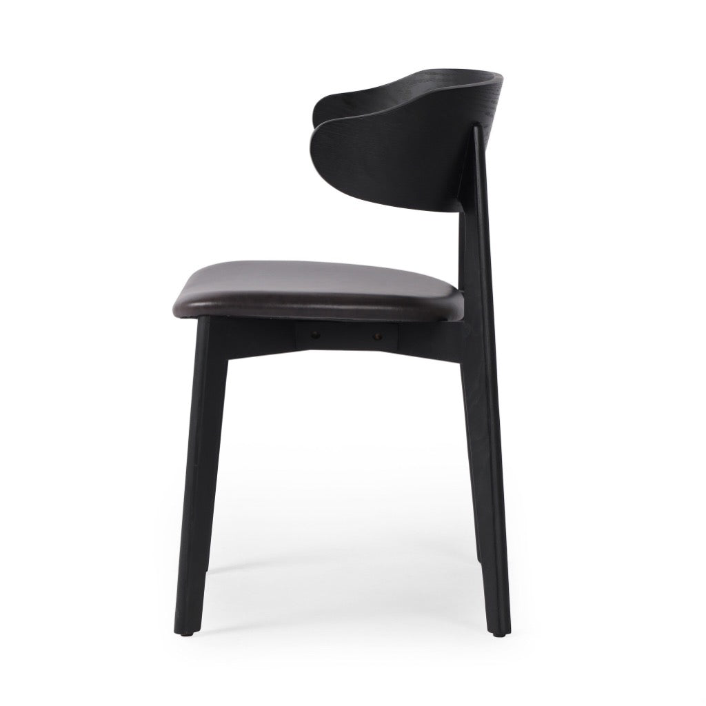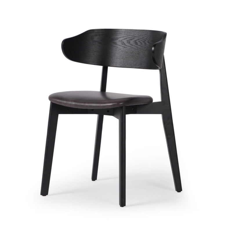A fresh, exaggerated take on the wing-back dining chair. Finished a classic jet black, a mix of solid ash and ash veneer makes a modern and shapely seating statement with midcentury undertones. Complemented by a cushioned seat in black top-grain leather exclusive to Four Hands.