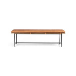 Fresh and transitional with effortless impact. Inspired by French antiques, airy, black-finished iron legs support a nettlewood dining bench with a chicly comfy layer of brandy top-grain leather seating that easily adheres via Velcro strapping.