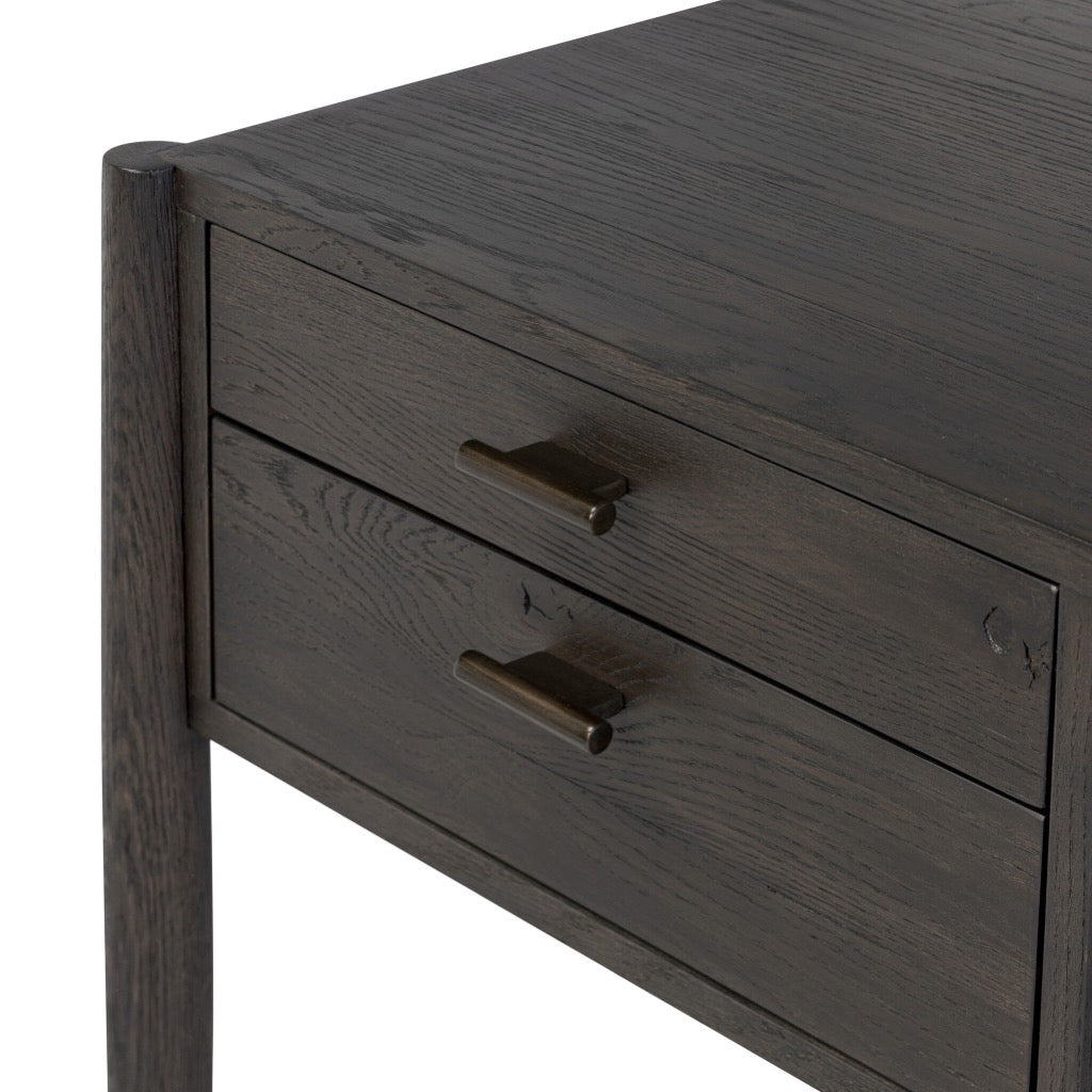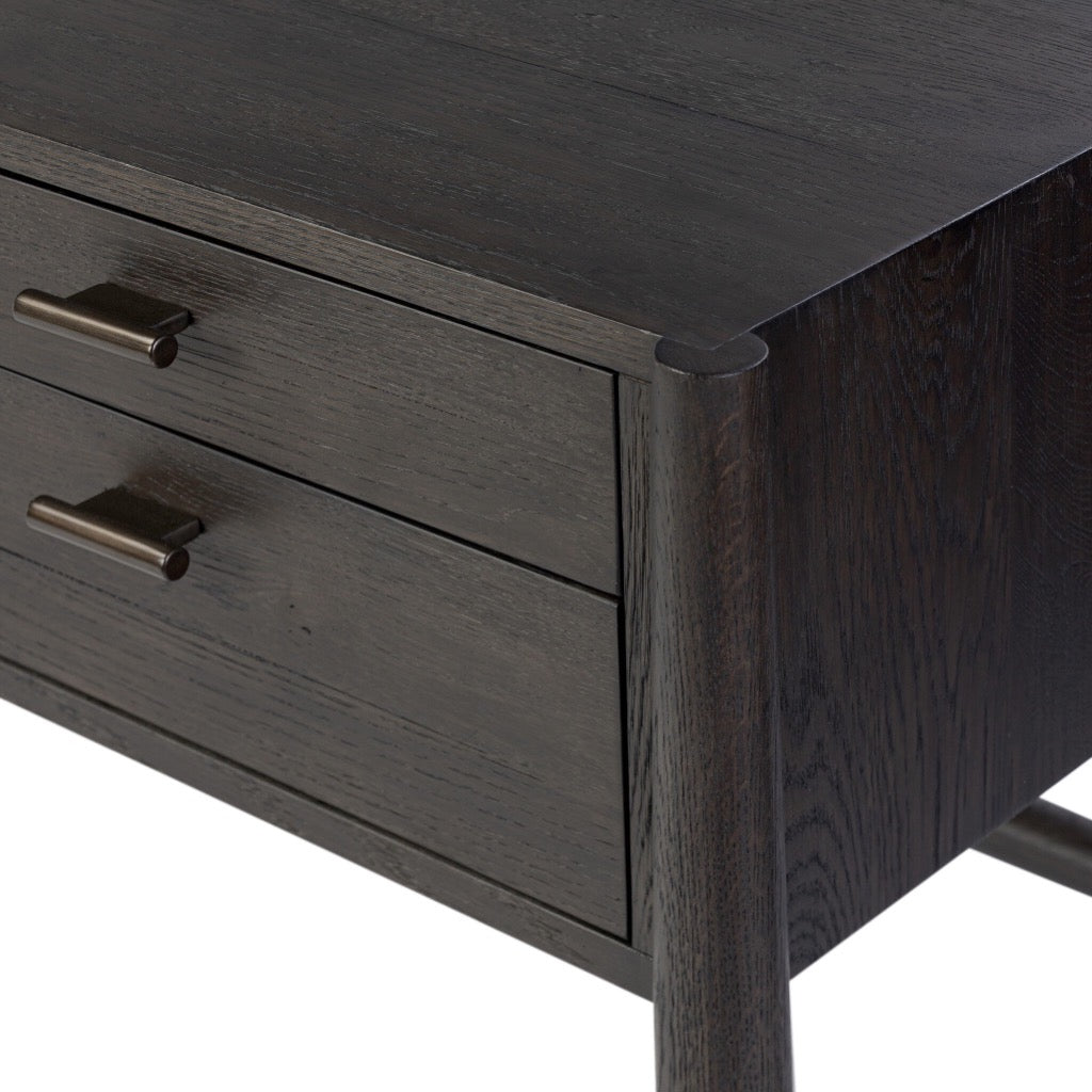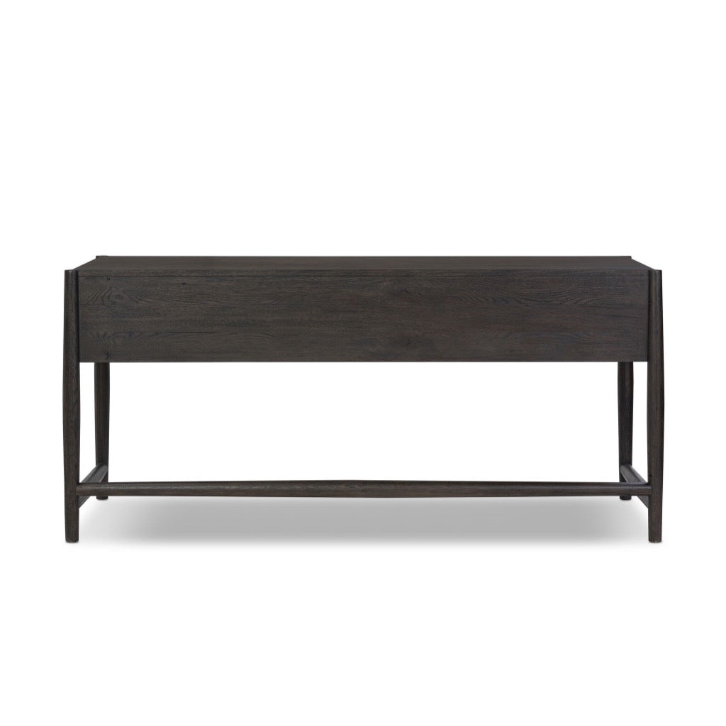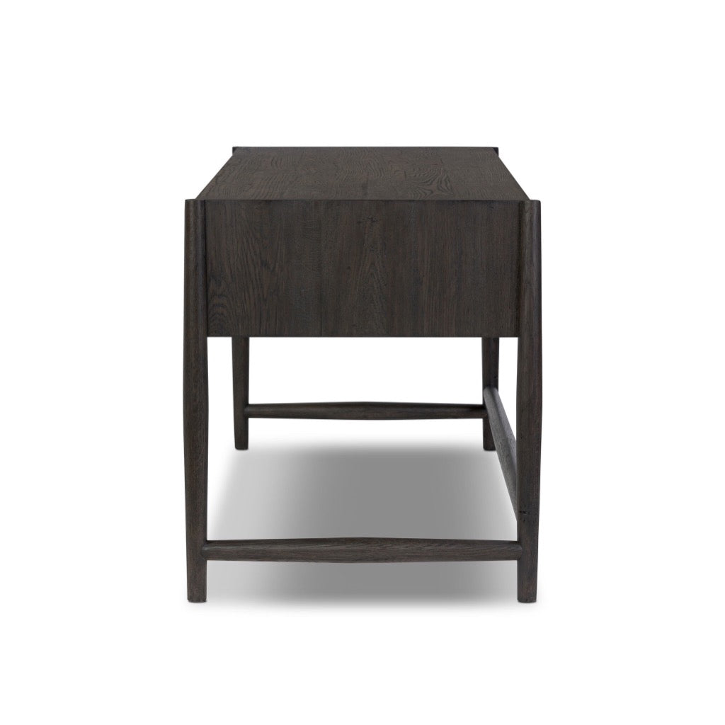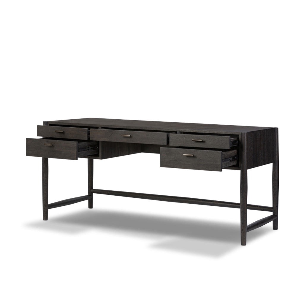 Traditional, reimagined. Made from rustic weathered oak, this desk brings generous storage space to the office. Simple hardware is finished in an aged bronze.