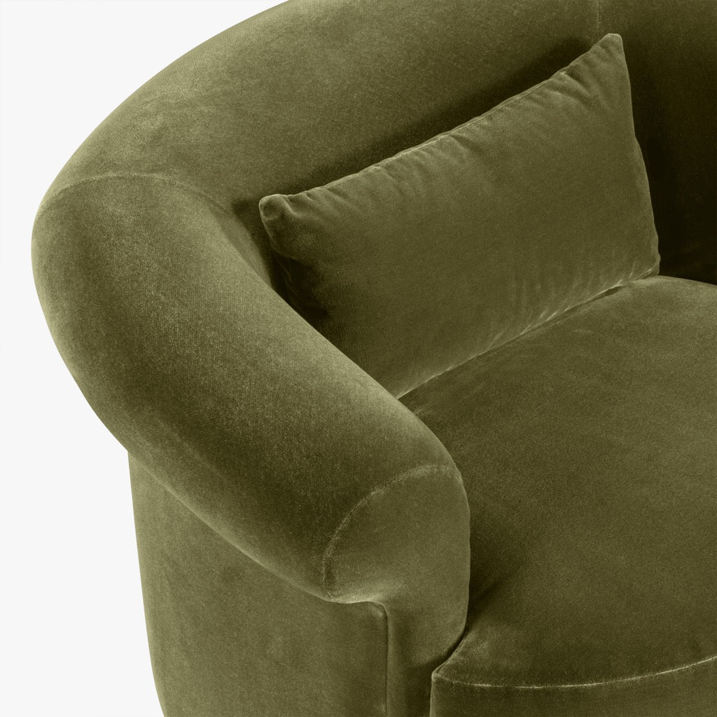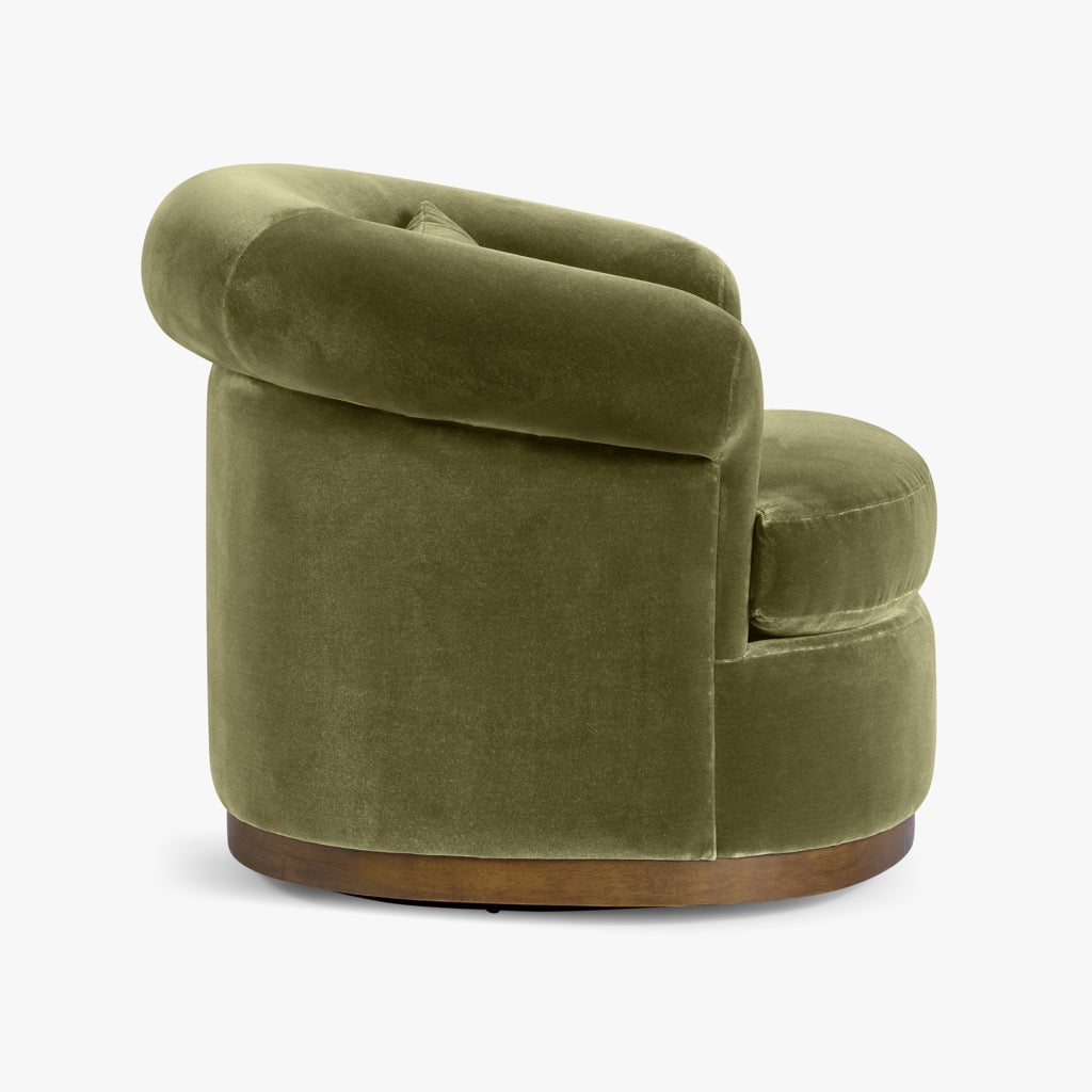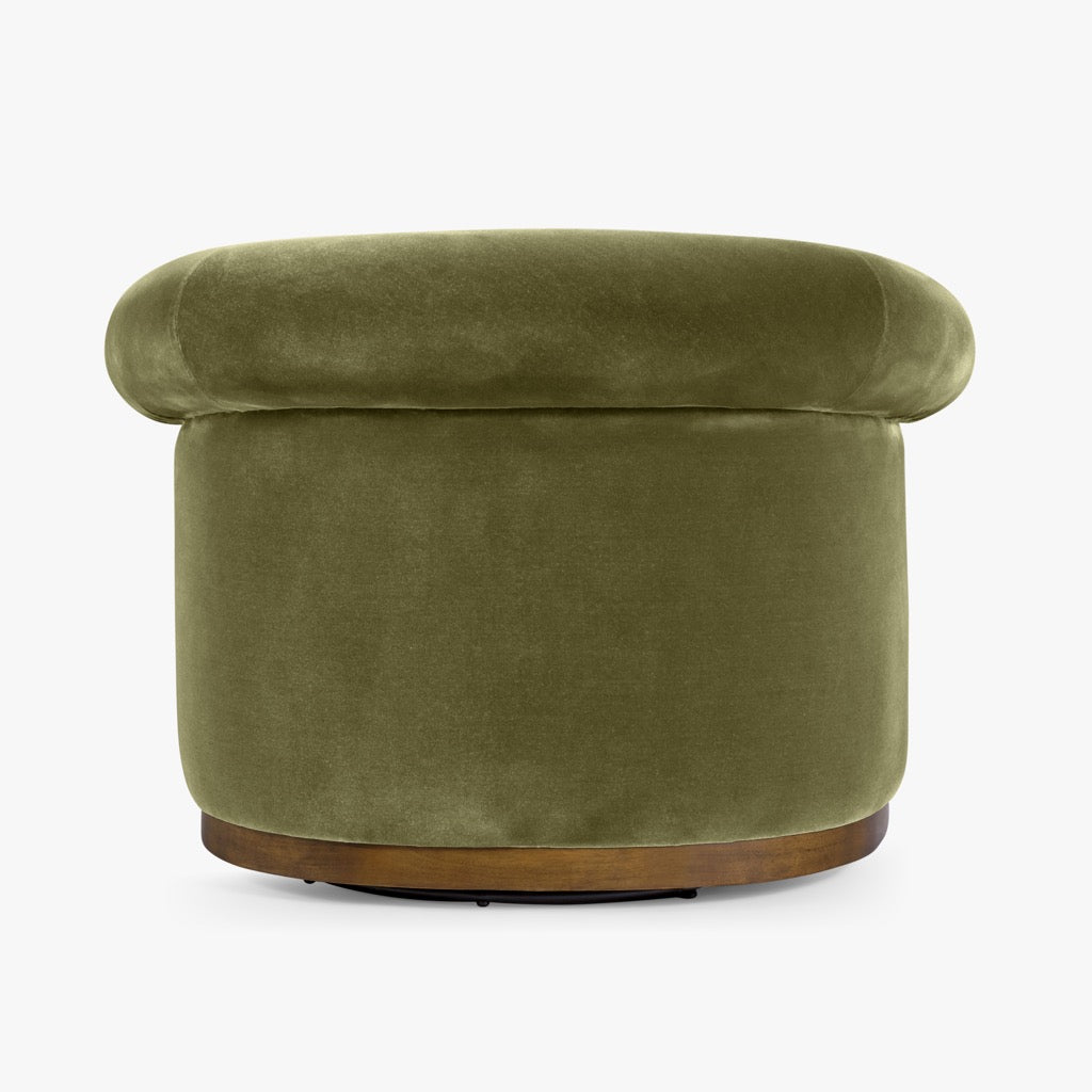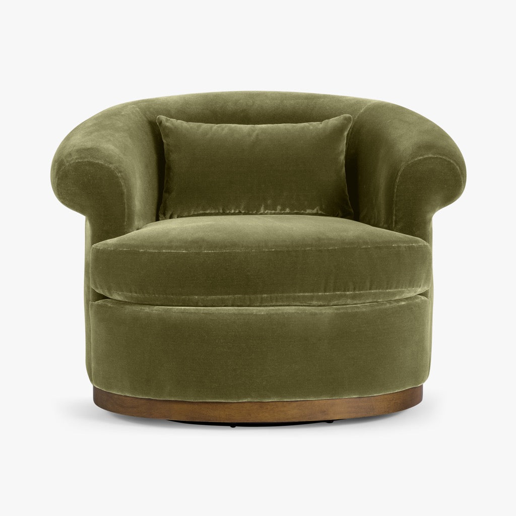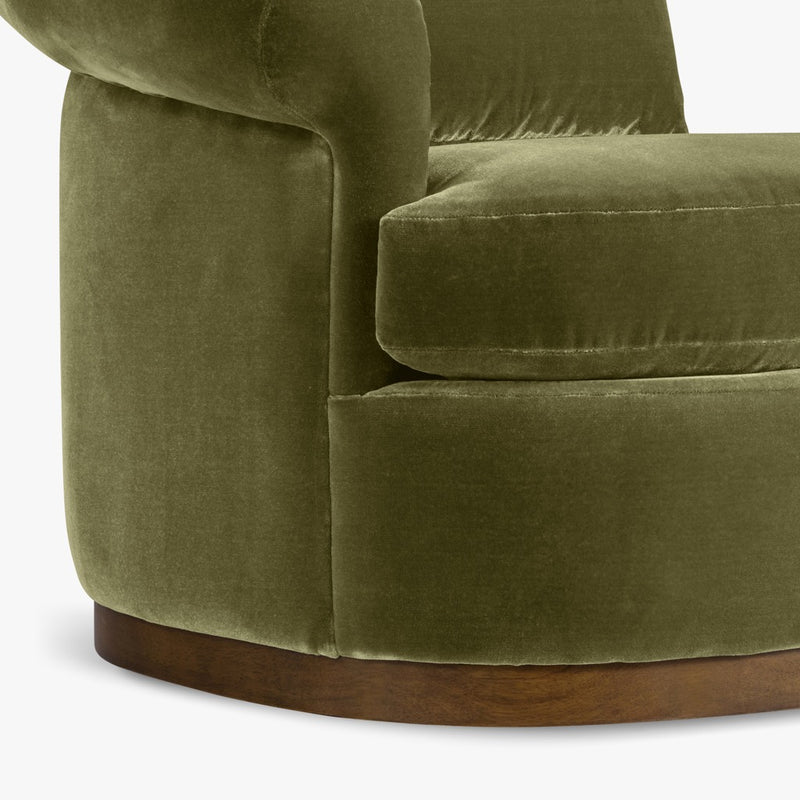 The Gracie swivel chair features classic rolled arms, with the wooden plinth and recessed swivel base giving it a more modern, contemporary feel.