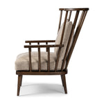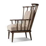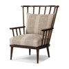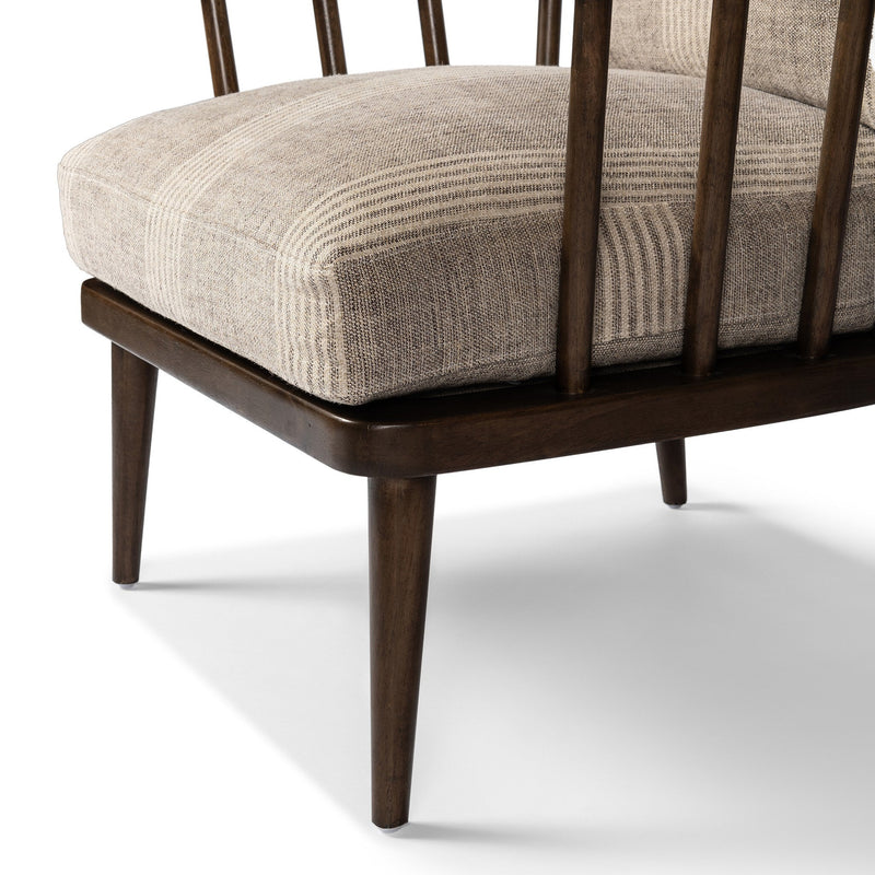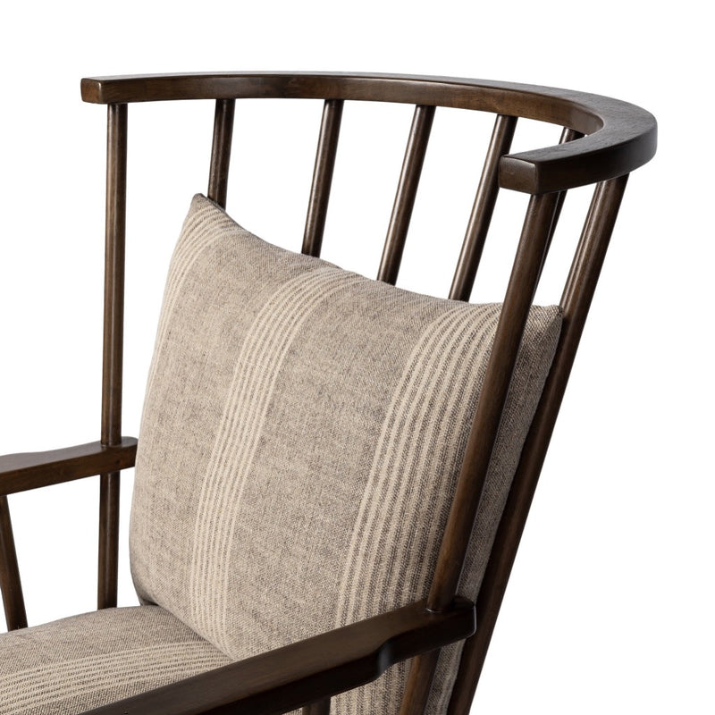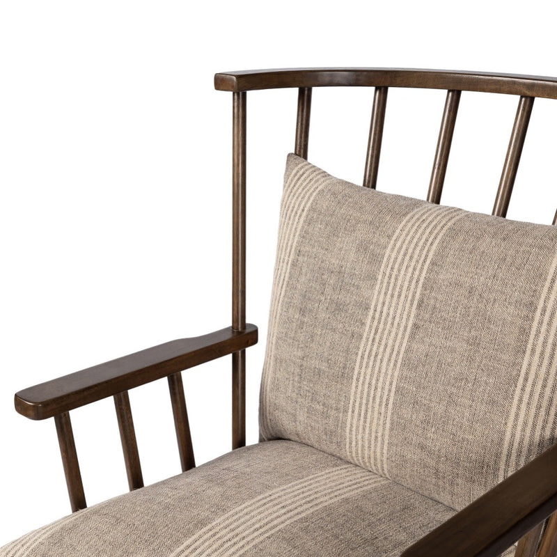 The classic high-back spindle chair gets a dramatic and comfy update with thick loose cushions covered in a classic cream-and-grey striped flax/linen blend.