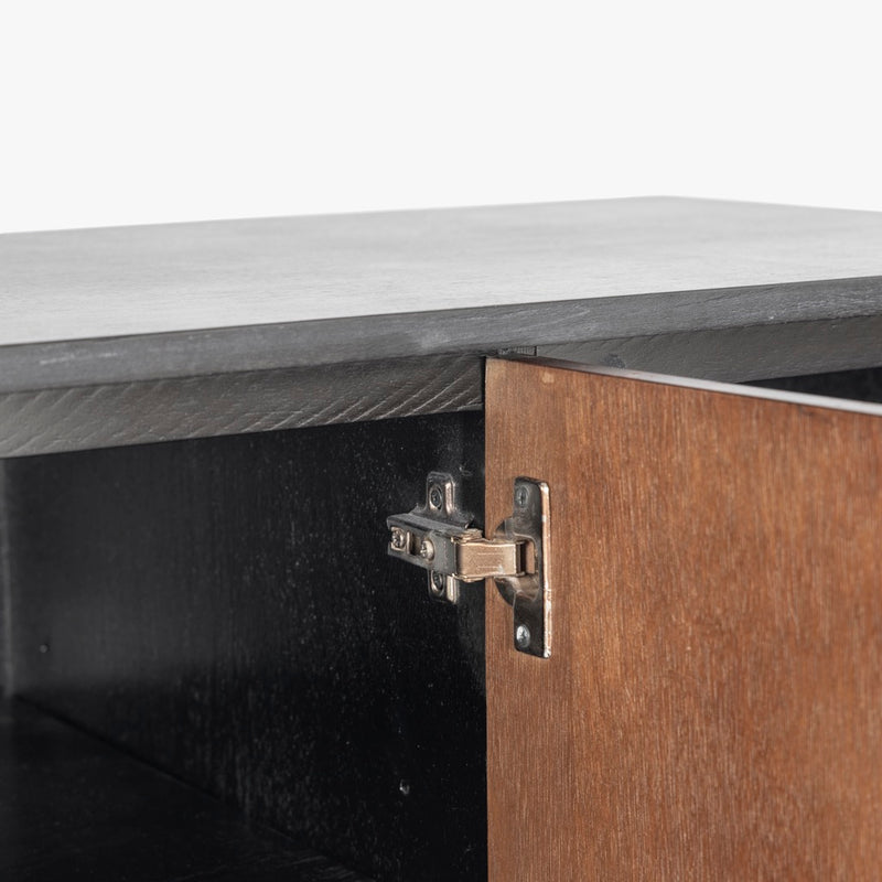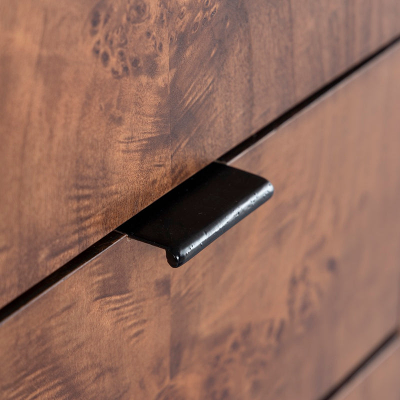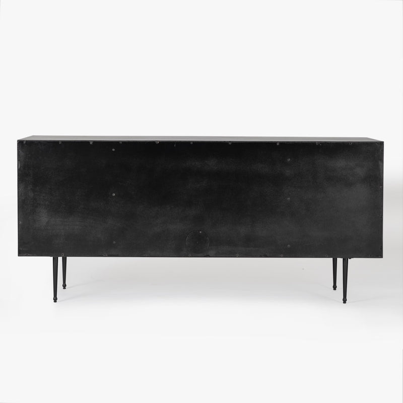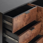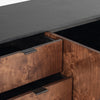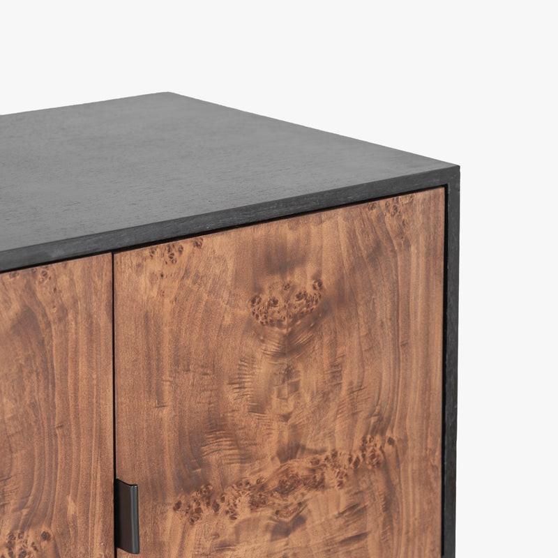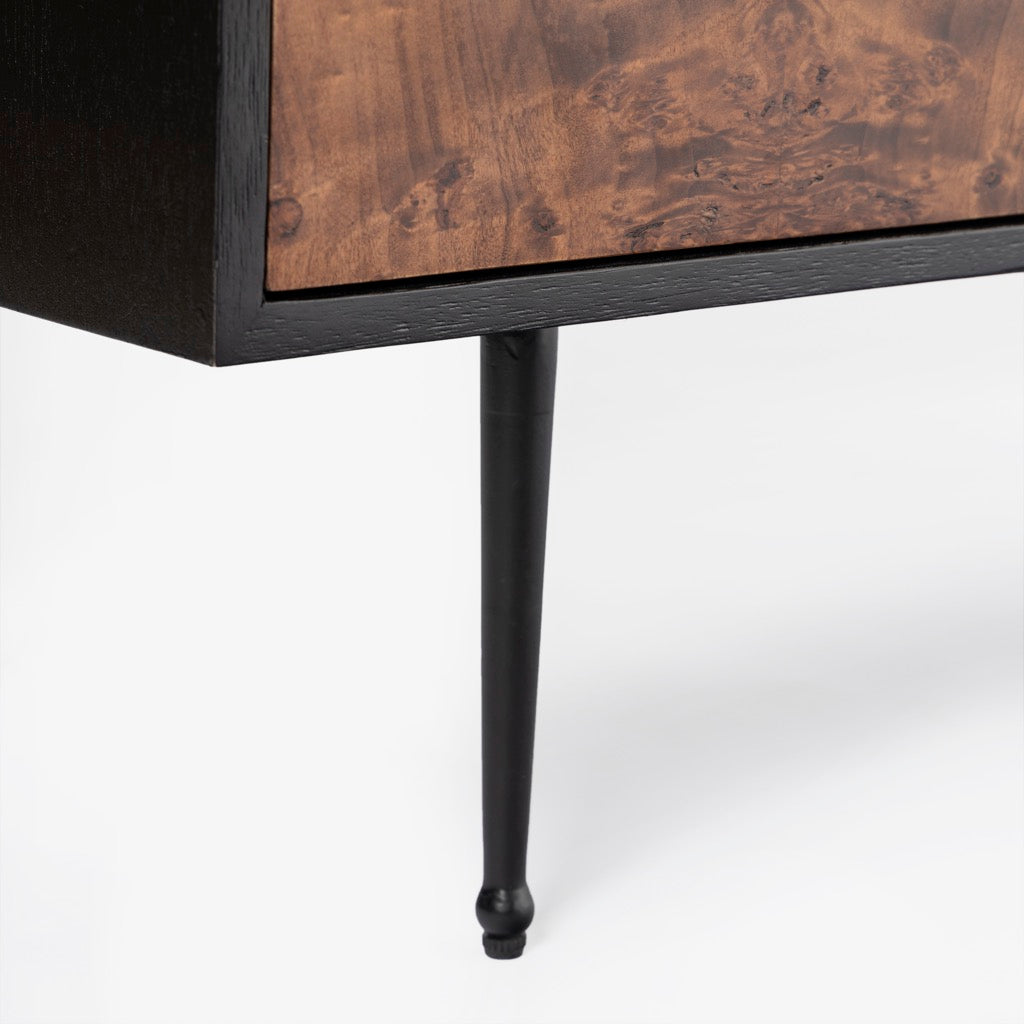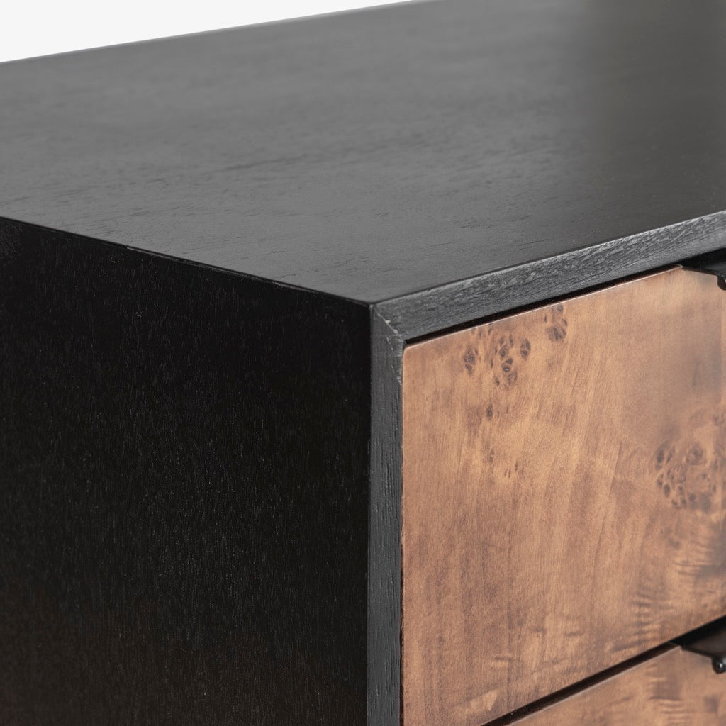 Discover the timeless charm of the Gregory Buffet. This modern masterpiece features a Burl veneer cabinet with the option of a light or dark burl, artfully paired with a solid wood black outer case. The inclusion of cast iron legs and drawer pulls adds an industrial touch, creating a statement piece that seamlessly blends sophistication with functionality.