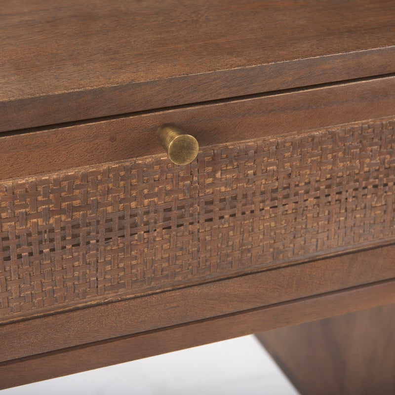 The Grier Office Desk is made from medium brown mango wood and finished with five drawers whose façades feature a latticed cane front.