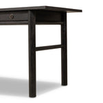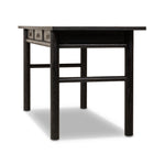 Distressed oak shapes an altar-style writing desk inspired by Chinese antiques. Three pencil drawers feature copper-clad ring pull hardware.