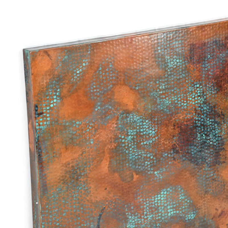 Use our artisan crafted Hammered Copper Square Table Tops to create your own beautiful style within your home. These tops look great, are highly durable and are fully customizable. They can be used as outdoor tables, end tables and nightstands, console or coffee tables, dining tables and everything in between. Cover a kitchen island or use it as an abstract wall hanging. Supply your own base or choose from one of our unique iron bases.