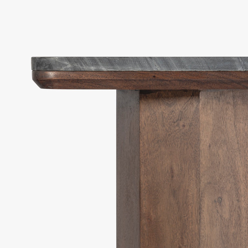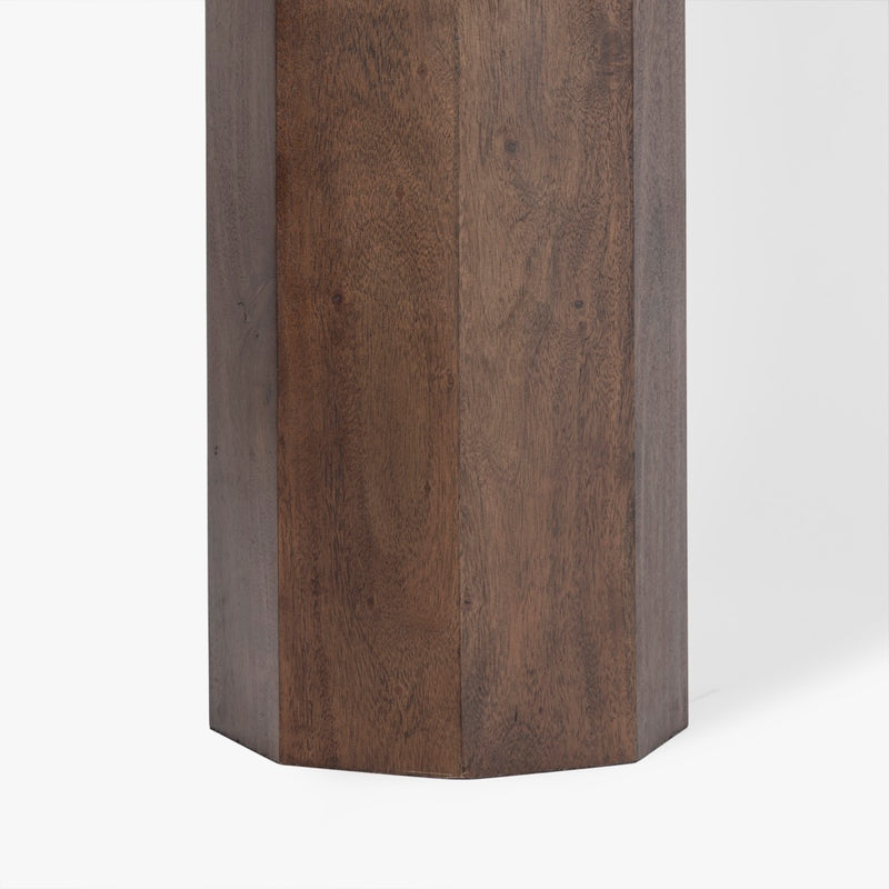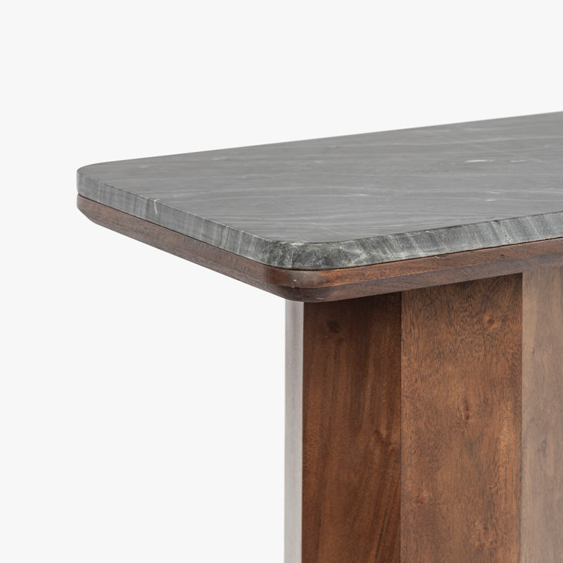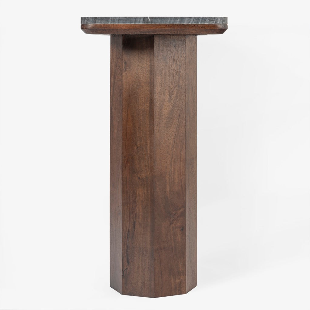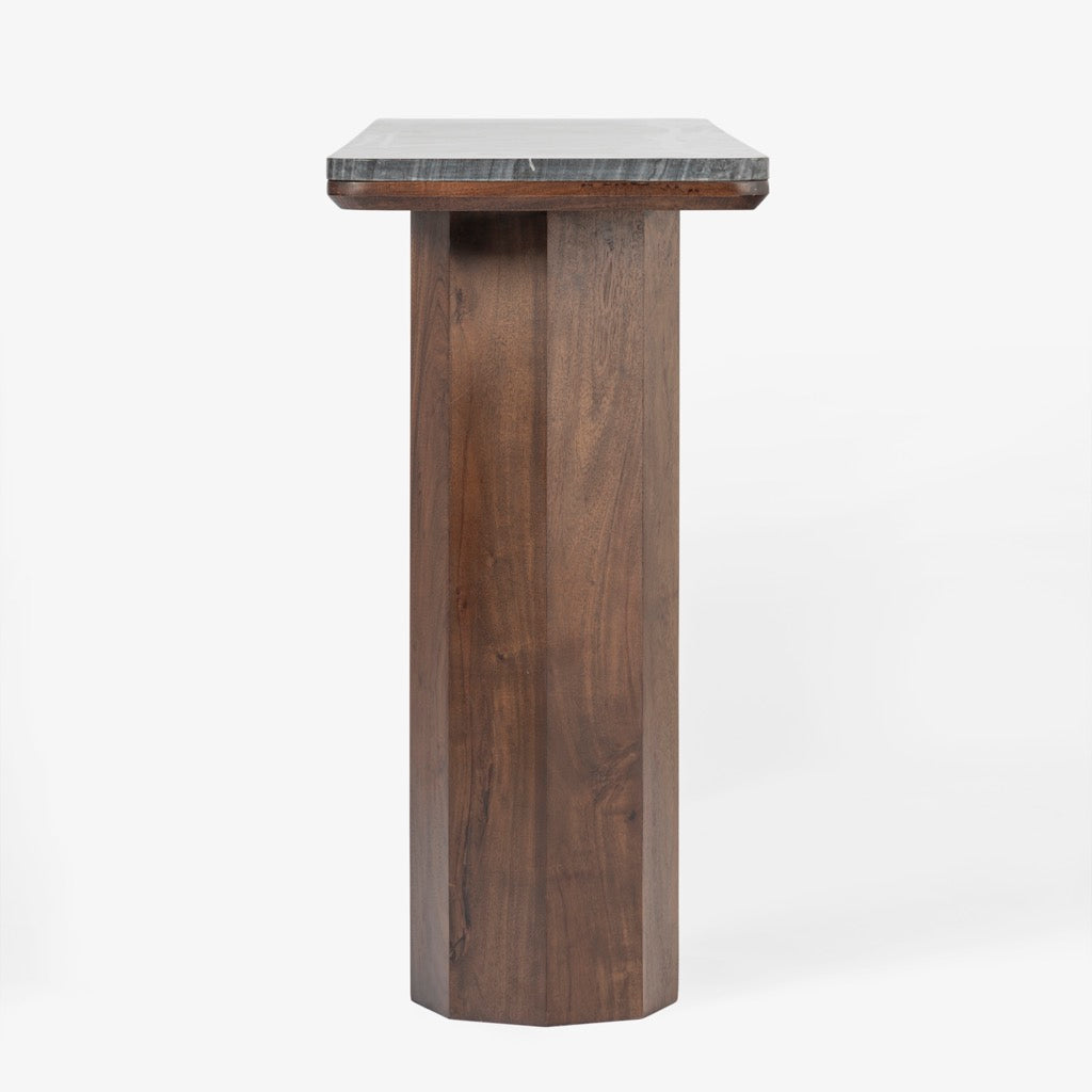Introducing the Hex Leg Console – a masterpiece of sculptural design and natural elegance. The console features a solid acacia base with a striking hexagonal leg design, providing a captivating focal point. Topped with black polished marble, this piece exudes sophistication and modern charm. Elevate your entryway or living space with the artful geometry and timeless luxury of this piece.