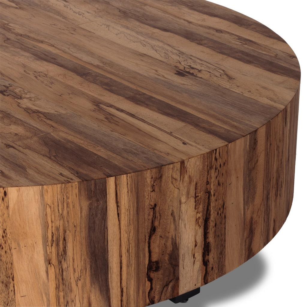 Stunning forces of nature are captured in a coffee table, as natural yukas veneer is hand-shaped into a cylindrical silhouette. Reflective of woods' natural character, a slight color variance is possible.