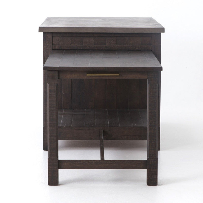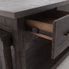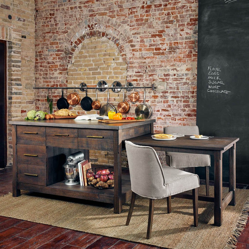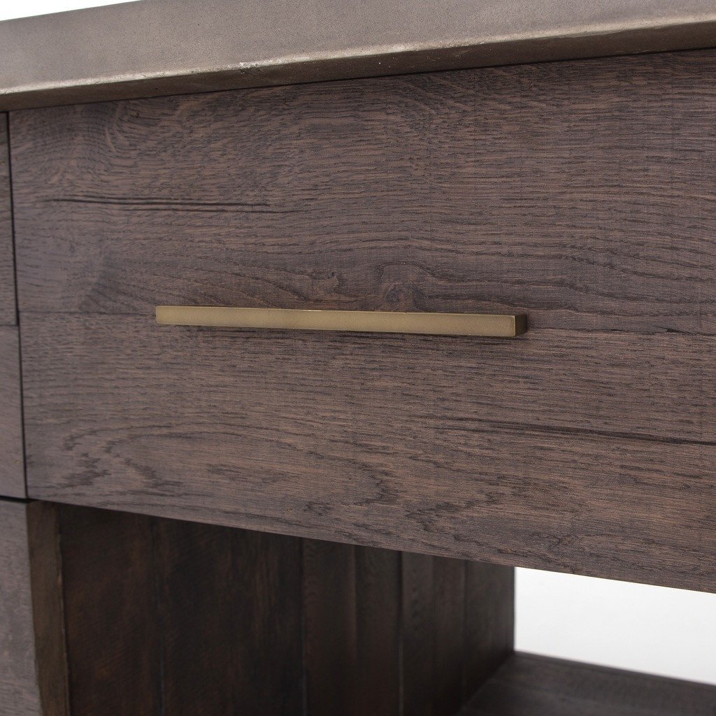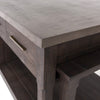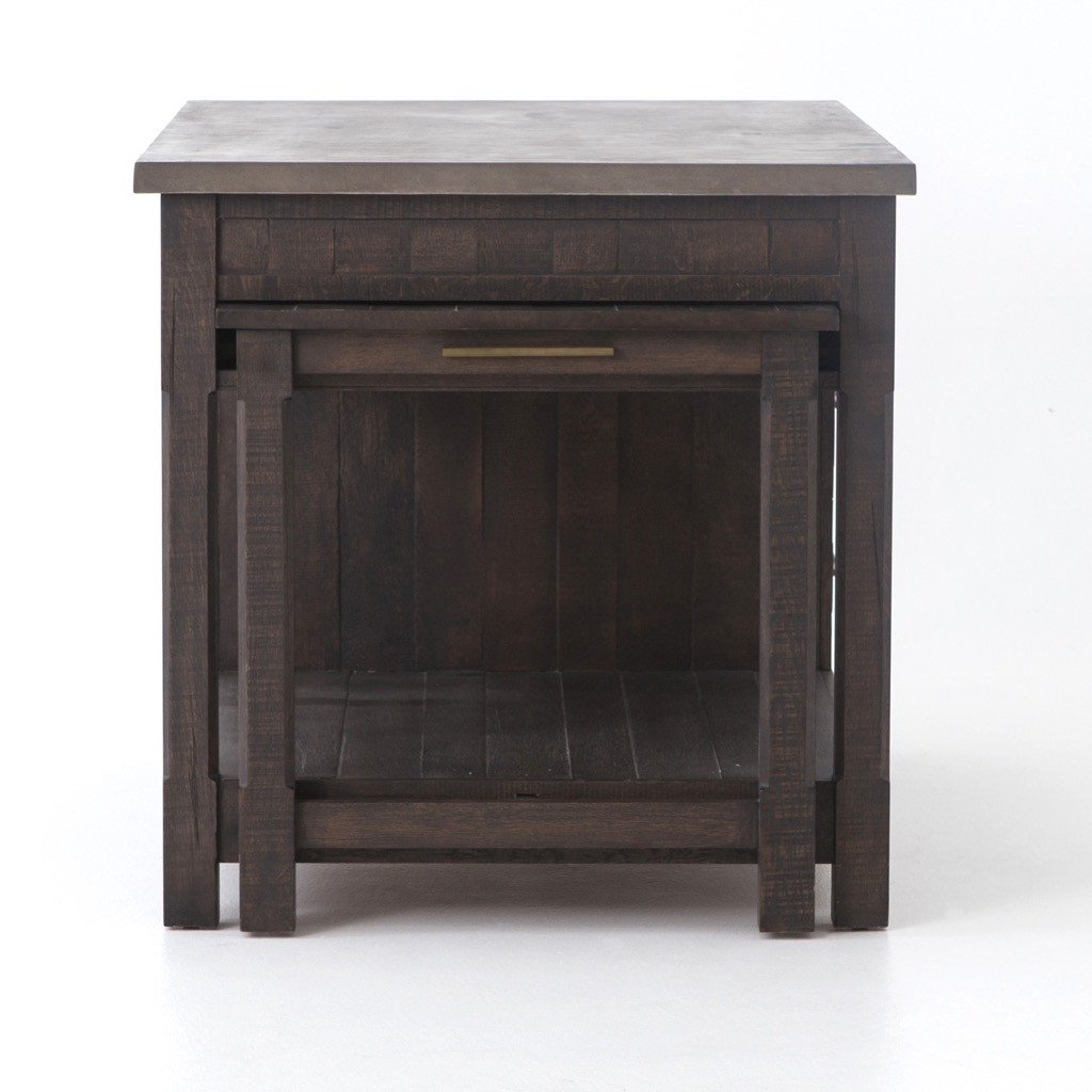 Add a functional anchor to any kitchen with the Ian Kitchen Island. Rubbed black acacia wood and concrete mix into modern decor, offering extra space for cooking or entertaining.