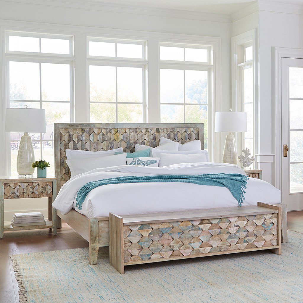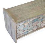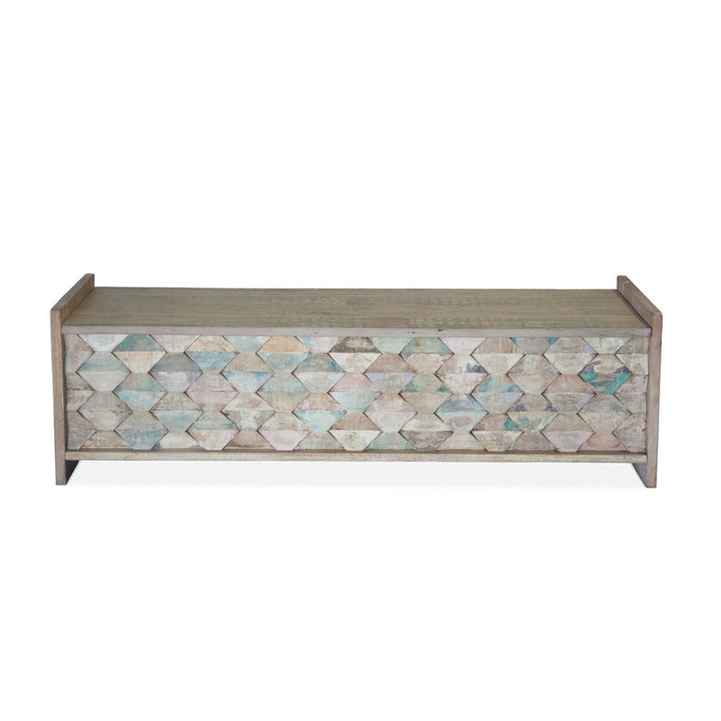 Reclaimed teak wood in an airy pastel finish exudes a casual, coastal charm in the pieces of the Ibiza collection. Each piece radiates a whimsical feeling that is both artful and wholly unique, combining hand-carved accents in a mixture of modern and vintage styles.