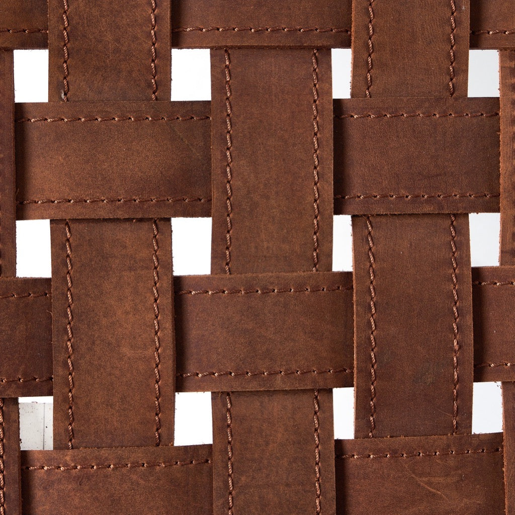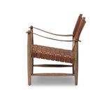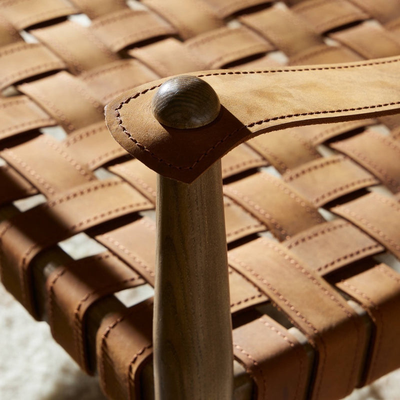 Reviving a vintage-inspired frame, this leather sling chair meets retro character with laid-back comfort. The tan leather sling back, shaped like a shield, adds bold style, while the woven seat provides a supportive, unique seating experience. Crafted from an ash wood frame with dowel construction, the chair?s arms create a subtle peekaboo effect with the leather. The thick saddle leather, expertly tanned, brings warmth and a found, aged look.
