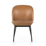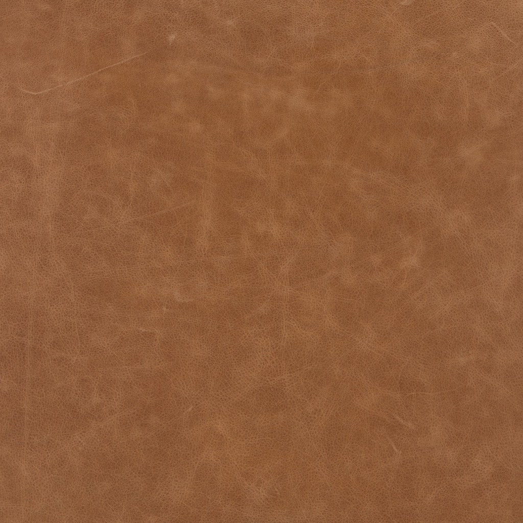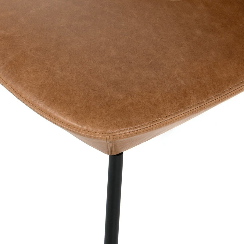 Slim, subtly splayed legs of black-finished iron support chamfered top-grain leather seating in a versatile tan.