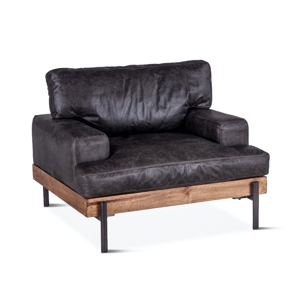 Streamlined design for true modern-minimalist attitude. Slim iron framing is finished in fashion-forward antique brass, bringing further warmth to this top-grain leather stunner.