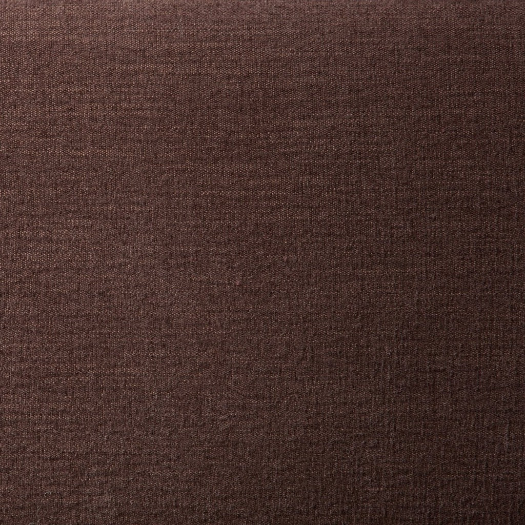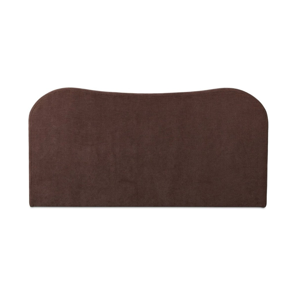 Subtly curved, this swooping bed frame is fully upholstered in a soft, plum-hue fabric for an inviting look that's rich in comfort.