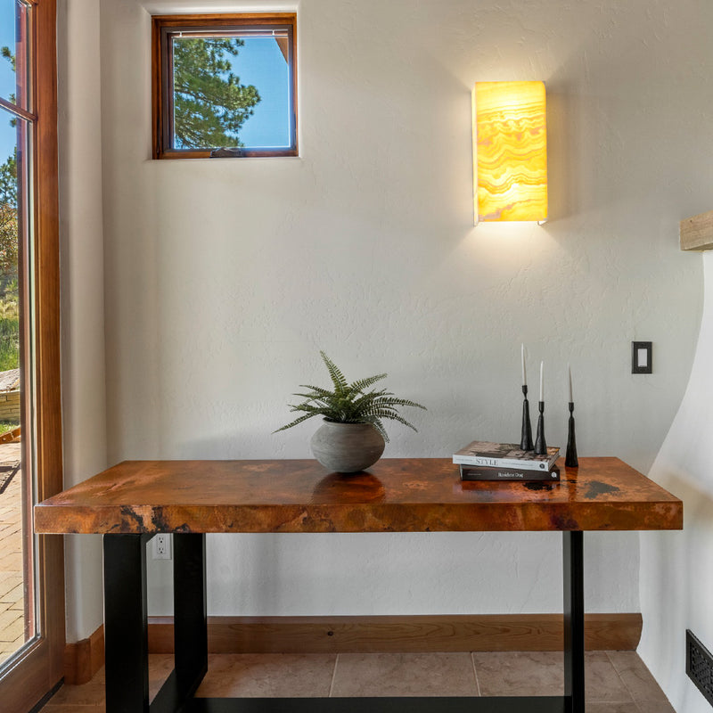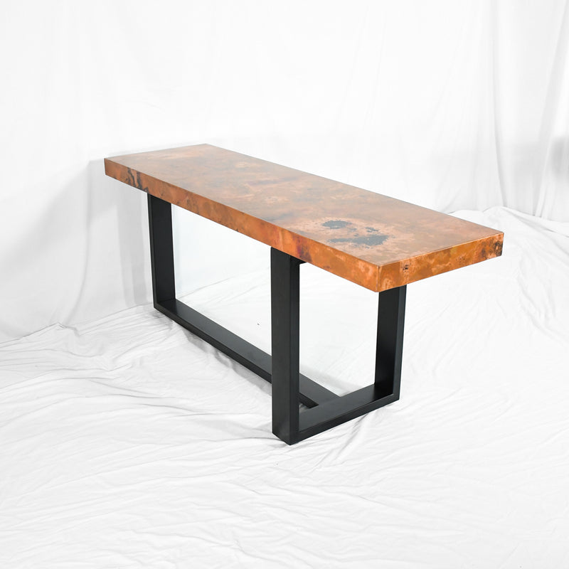 The Jupiter Console Table's clean lines and chunky silhouette exude a sense of modernity, while the captivating copper surface adds a touch of rustic charm, creating the perfect balance between classic and contemporary styles. Whether placed in your foyer, living room, or hallway, this hand-crafted console table is a versatile piece that effortlessly complements any decor theme.