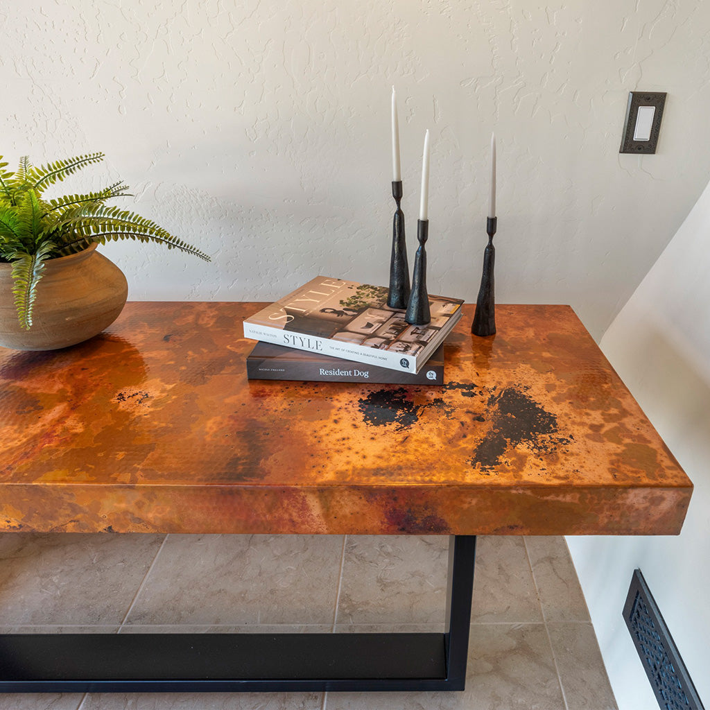 Copper is a surprisingly resistant metal that is easy to maintain. Copper tables and other pieces