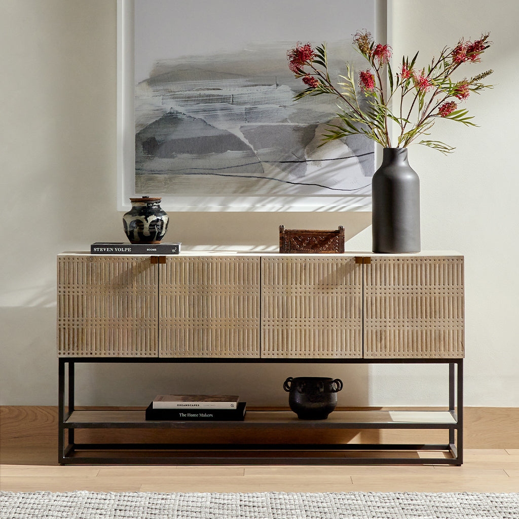 Kelby Small Media Cabinet - Light Wash Carved Mango