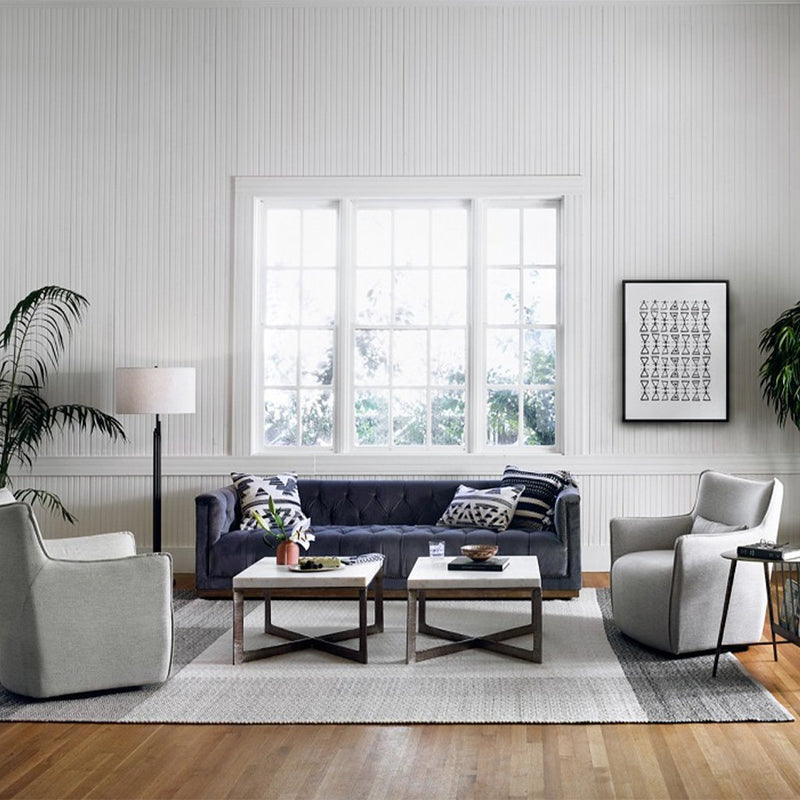 Expert tailoring creates a clean, sophisticated look, rich with come-hither comfort. A tight sit and barrel shape is softened via flange seam detailing and swivel feature and finished off with a petite lumbar cushion, for the perfect mix of shape and function.