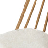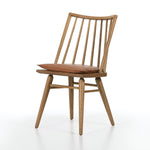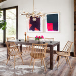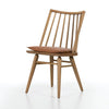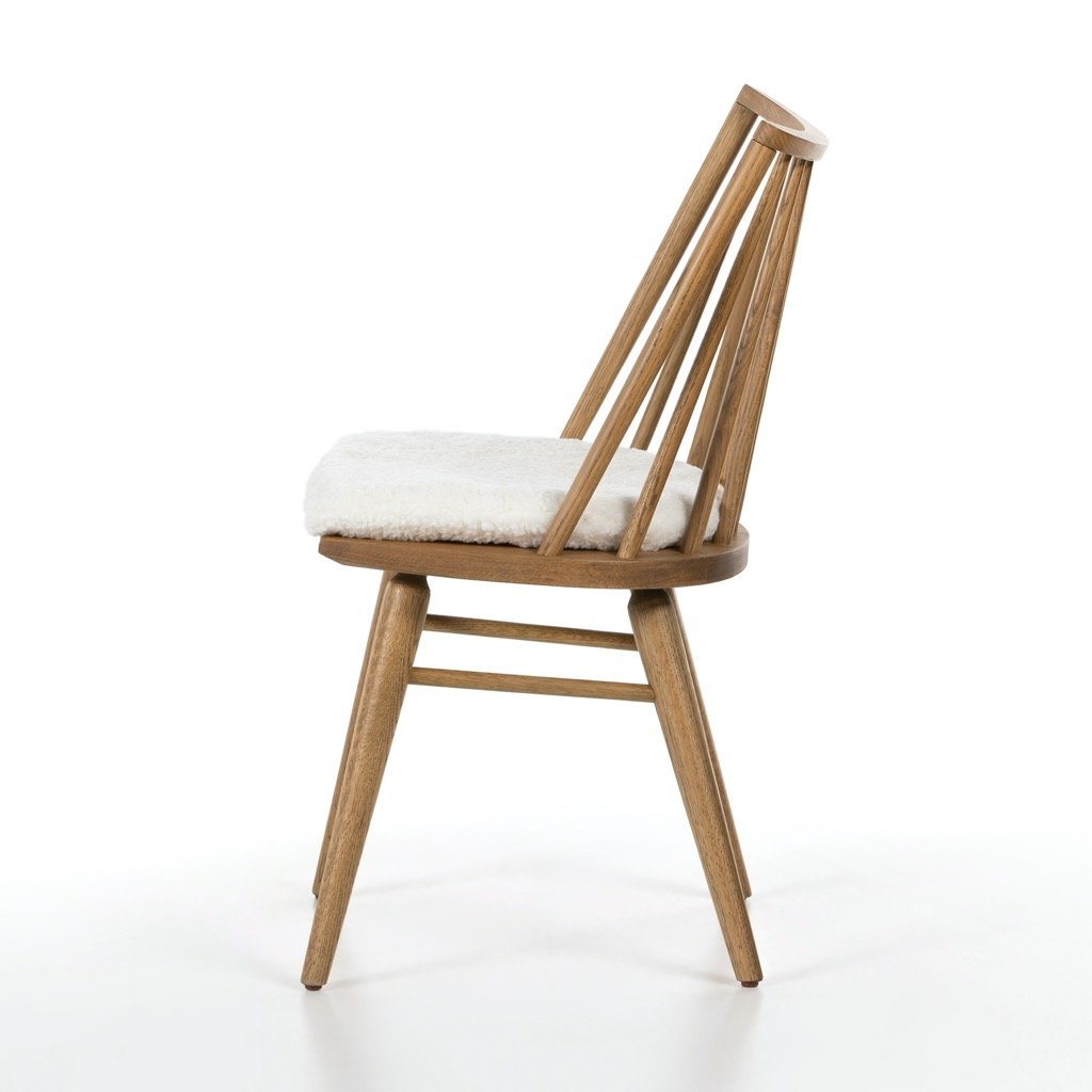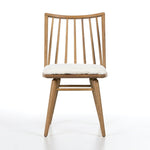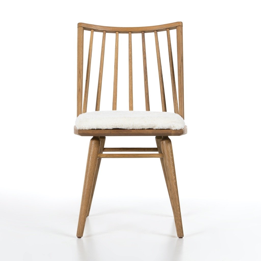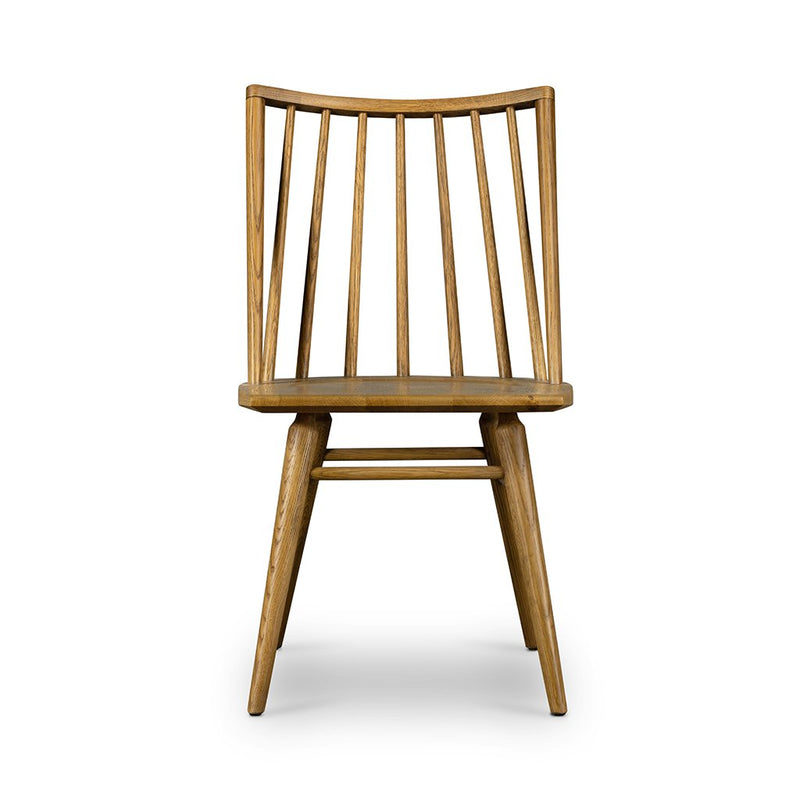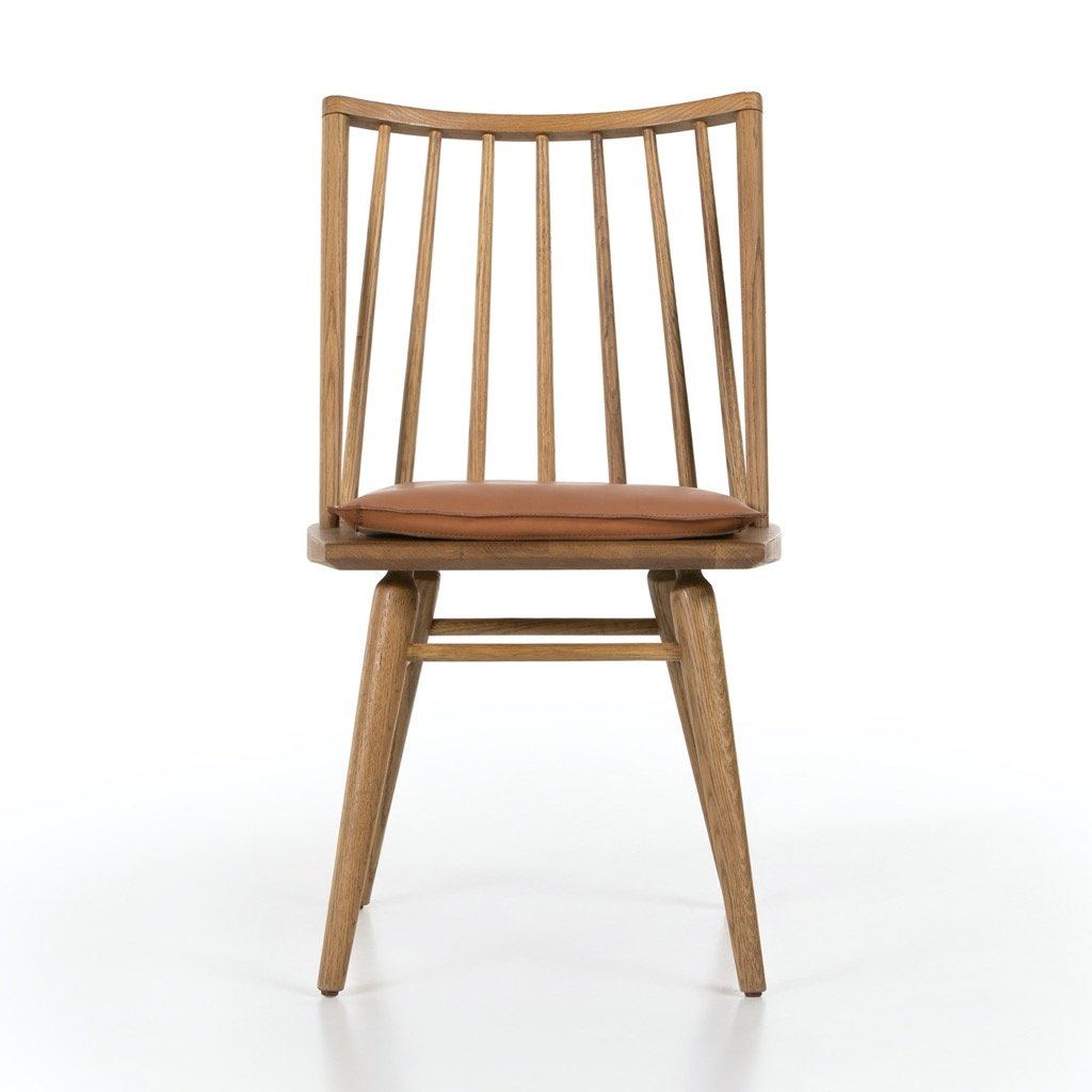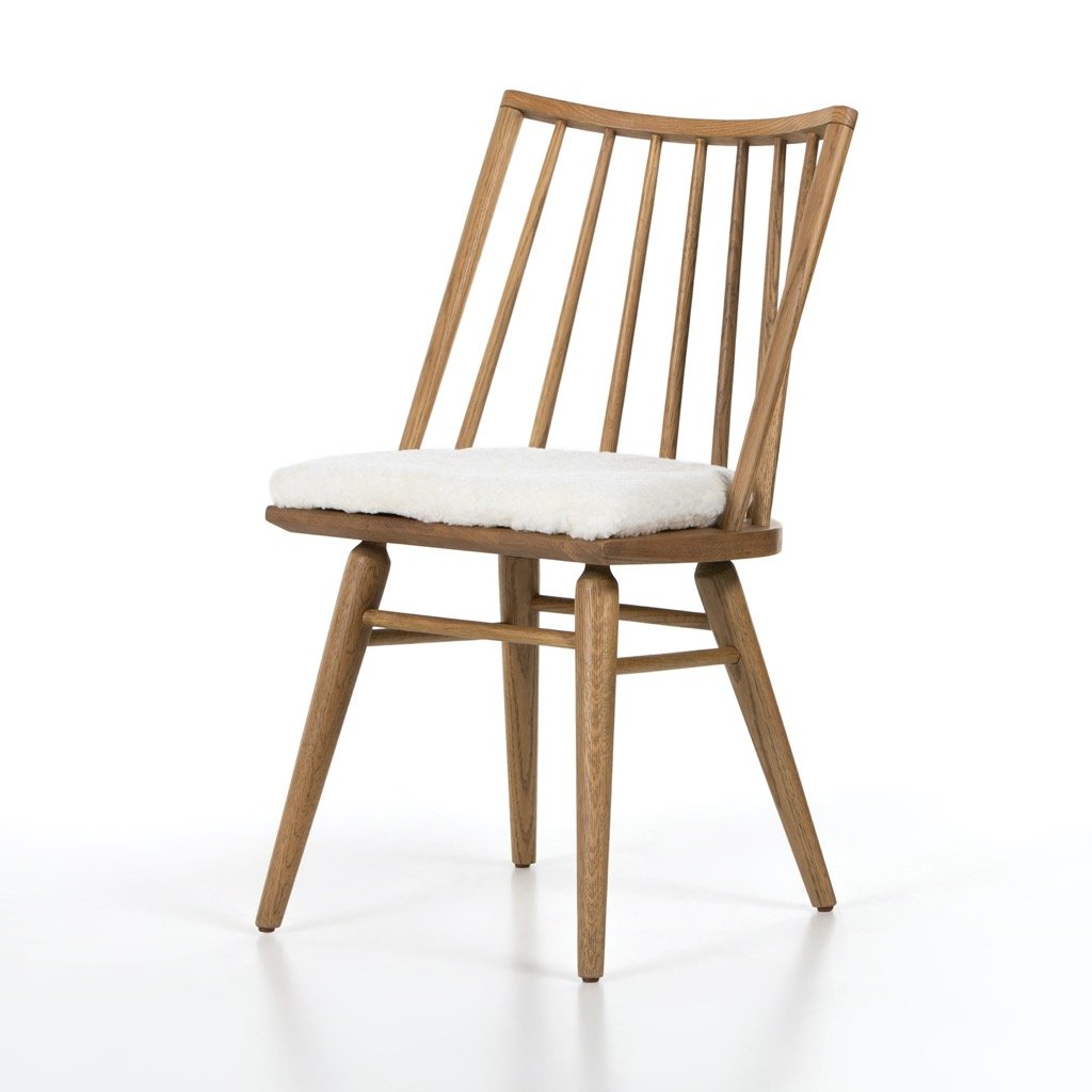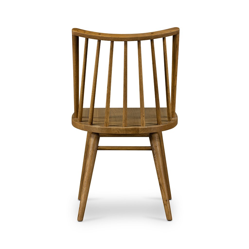 Try a cleaner, more modern take on the traditional Windsor. Tall oak seating is wire-brushed to bring out natural cathedral graining, then stained a beautifully neutral sandy oak.