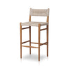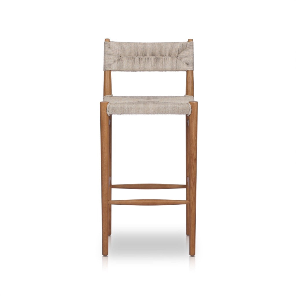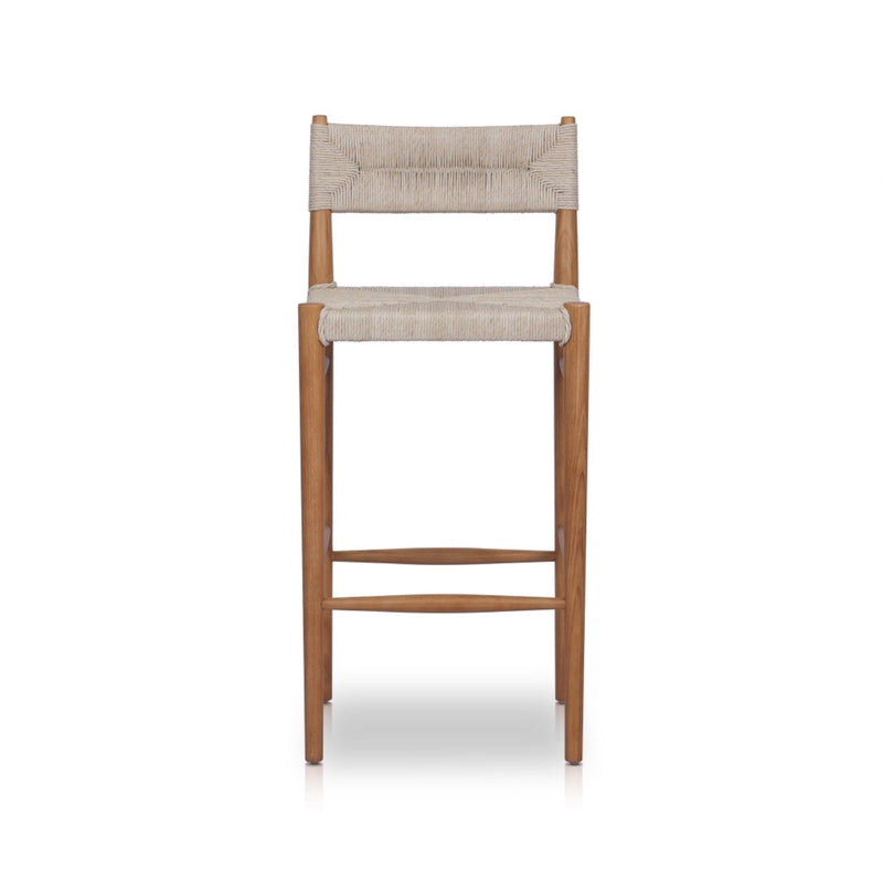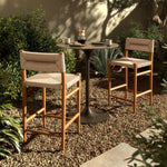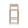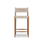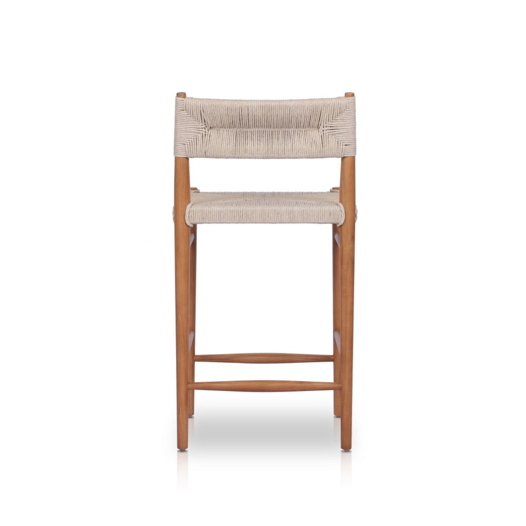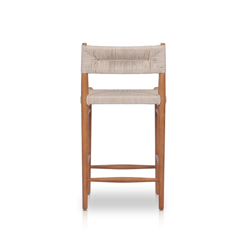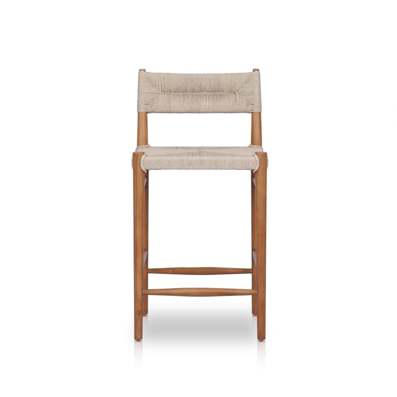 With a beautifully natural finish, slim, tapered teak frames this woven all-weather wicker counter stool. Cover or store indoors during inclement weather and when not in use.