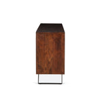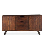 With a classic charm and an air of sophistication, the London Loft Sideboard (and the remainder of the dining collection) incorporates everything you think of when dreaming of an autumn day in an international city. A thick slab of heavy, plantation grown Acacia wood sits atop a sleek, hand-forged iron base to create a fusion of natural and industrial elements that is both modern as well as rustic. The live edge on both sides of the table-top further add to the unique beauty of each piece to provide the home design elements you've been searching for. A glossy Walnut colored finish will protect your table for many generations to come.