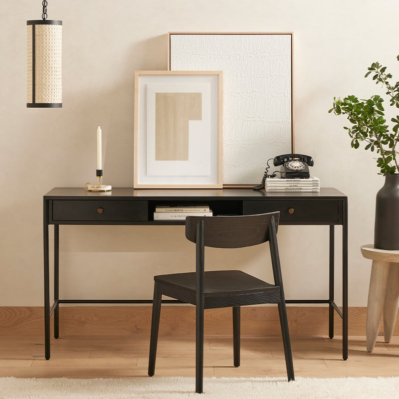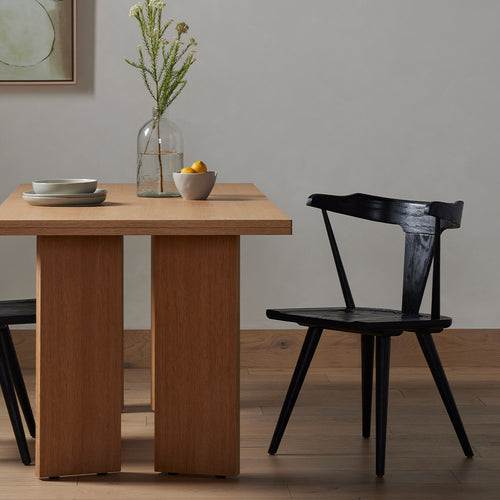 Try a fresh twist on traditional schoolhouse seating. Finished in a chic, timeless black, solid ash framing and an ash veneer seat form a clean silhouette ideal for everyday dining.