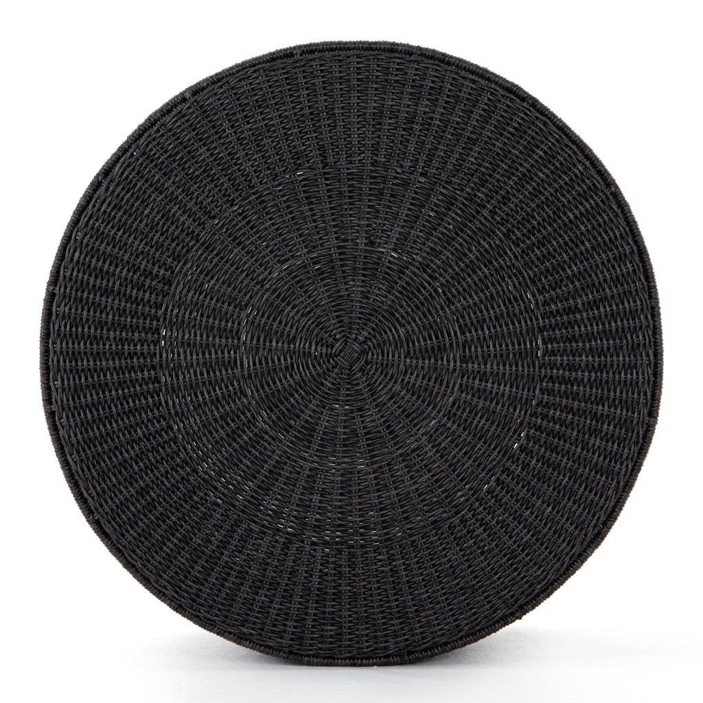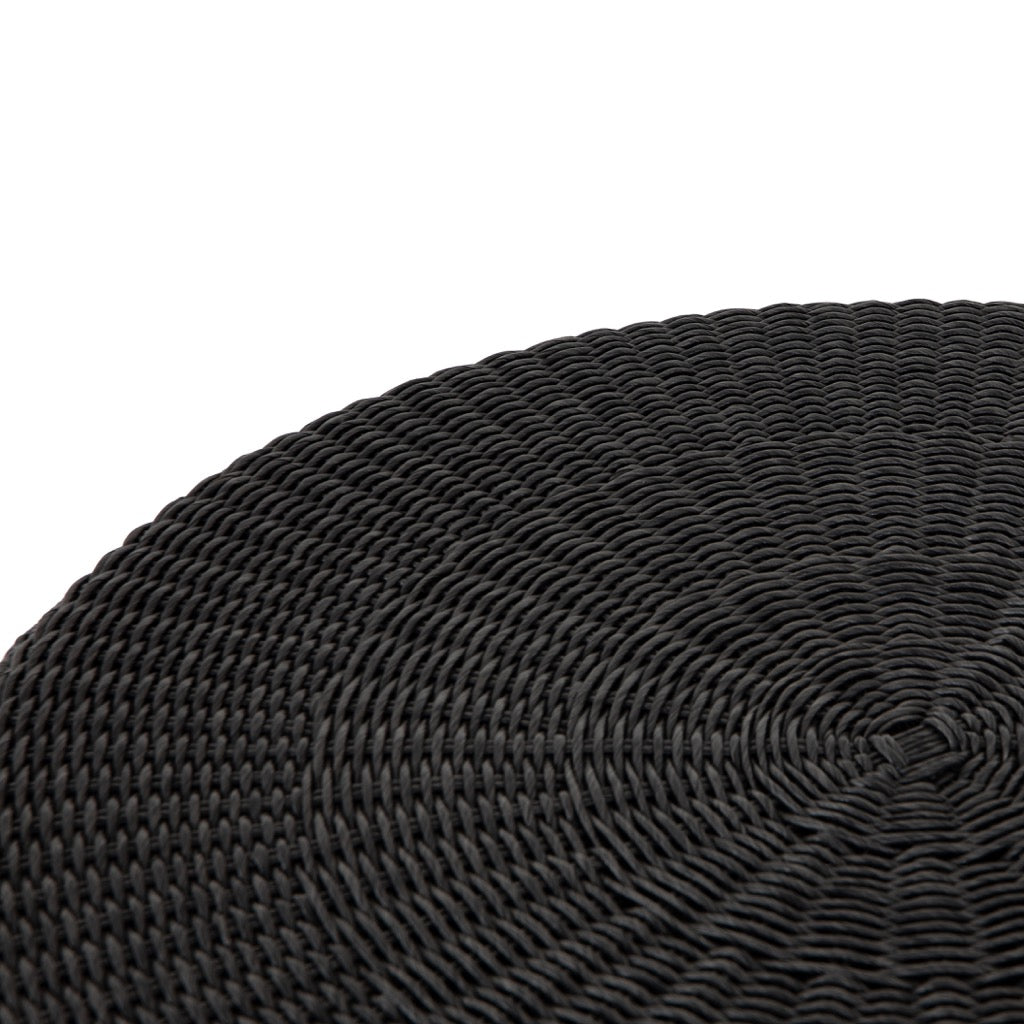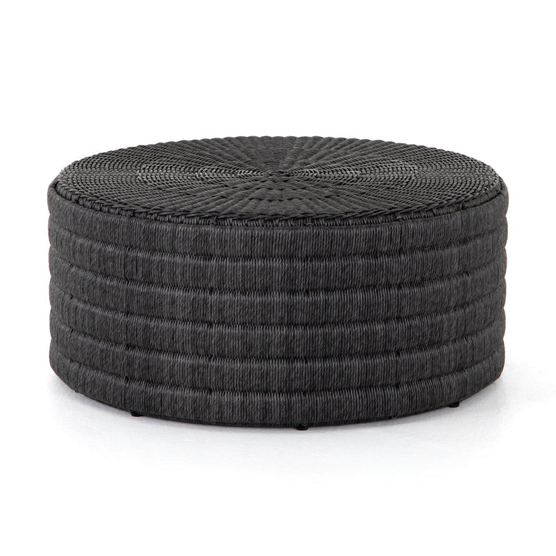 Finished in a deep coal, all-weather wicker beautifully rounds to form a texture-driven coffee table, perfect for outdoor entertaining. Cover or store inside during inclement weather and when not in use.