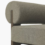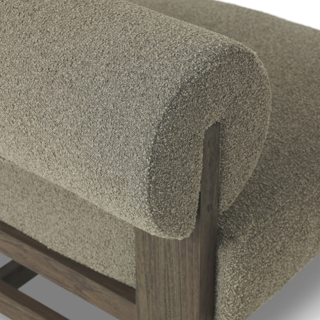 Sculptural rounded cushioning softens the linear, asymmetrical frame of this outdoor statement seating. Solid 100% FSC-certified teak frame. Cushioning is covered in 100% olefin, known for its UV-resistant, water-repellent and quick-drying abilities. Cover or store indoors during inclement weather and when not in use.