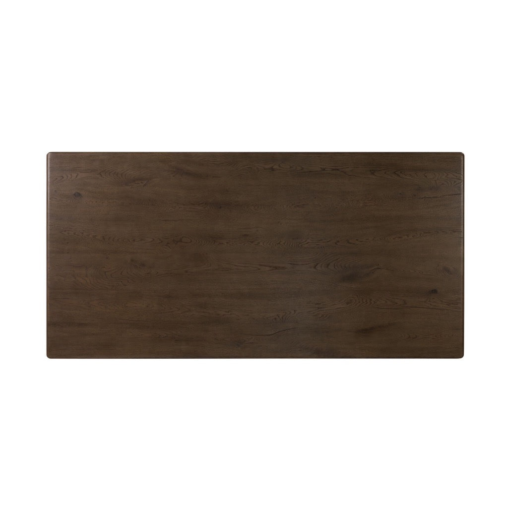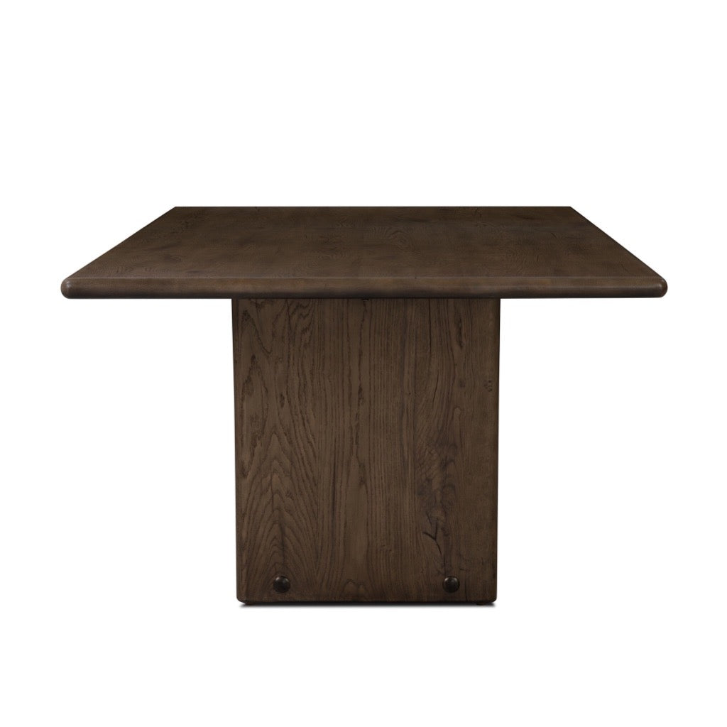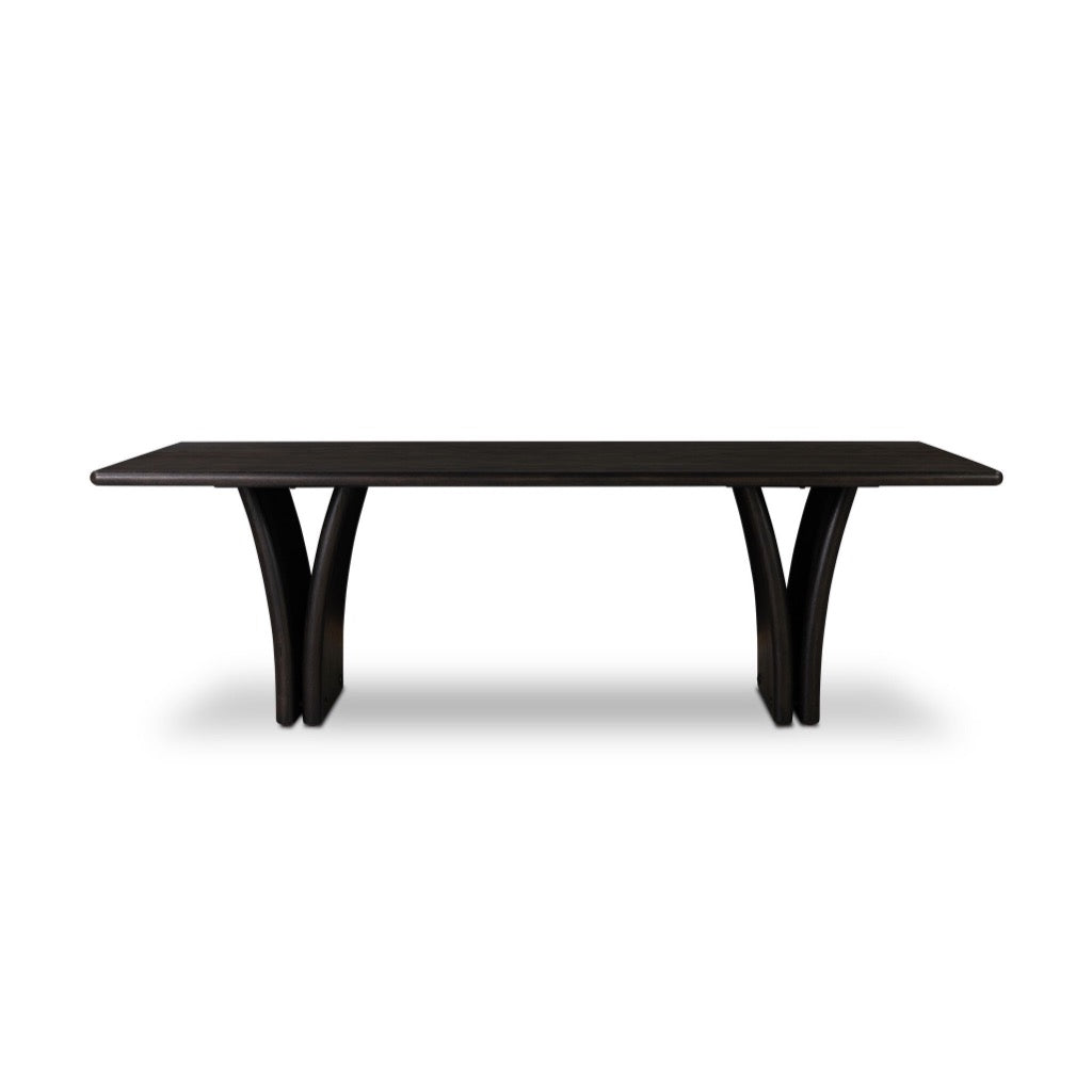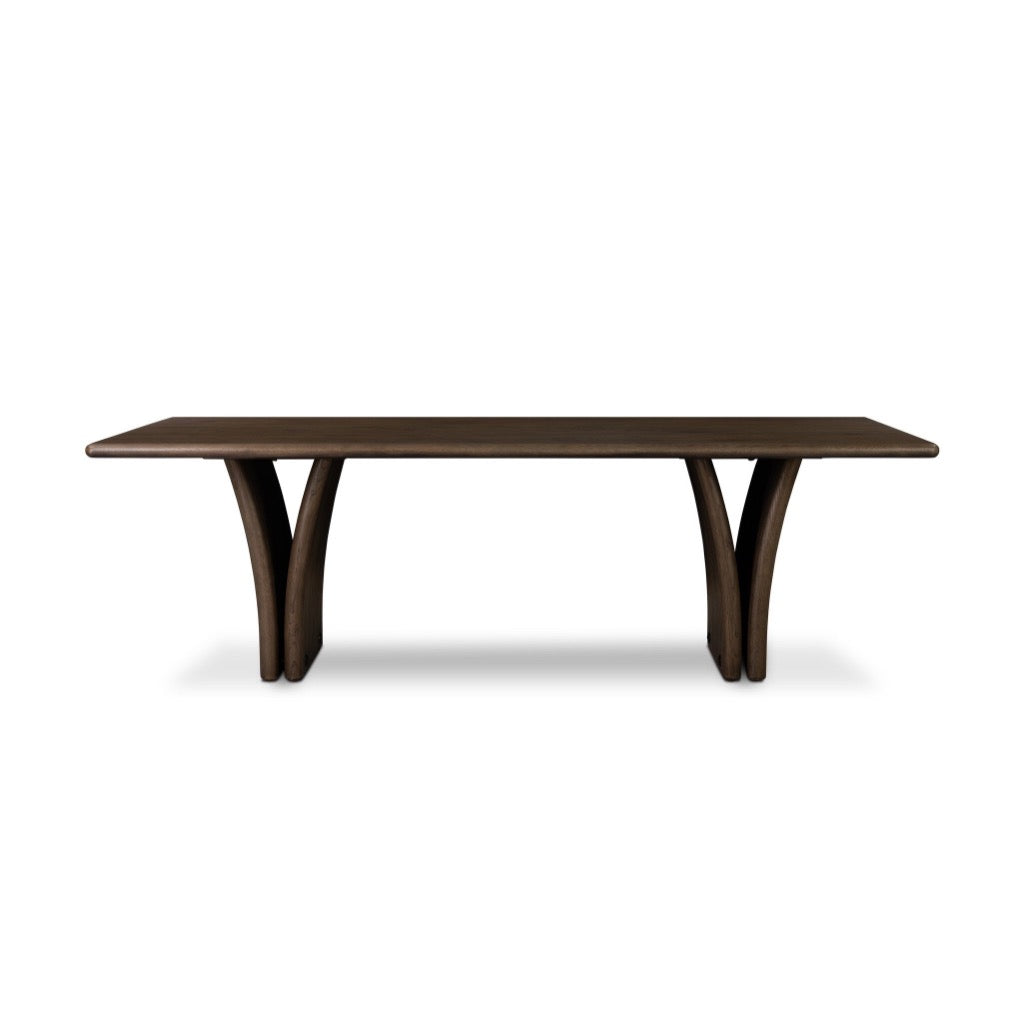 Designed by Thomas Bina and Ronald Sasson, a design partnership blending both modern minimalist and Brazilian influences. Grand-scale dining table is crafted from natural reclaimed French oak with tapered pedestal panels connected at the base.