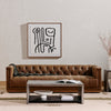 This modern take on classic library-style seating adopts a distressed birch-colored top grain leather and mounted on a grey parawood base. Aged bronze nailheads add modernity.