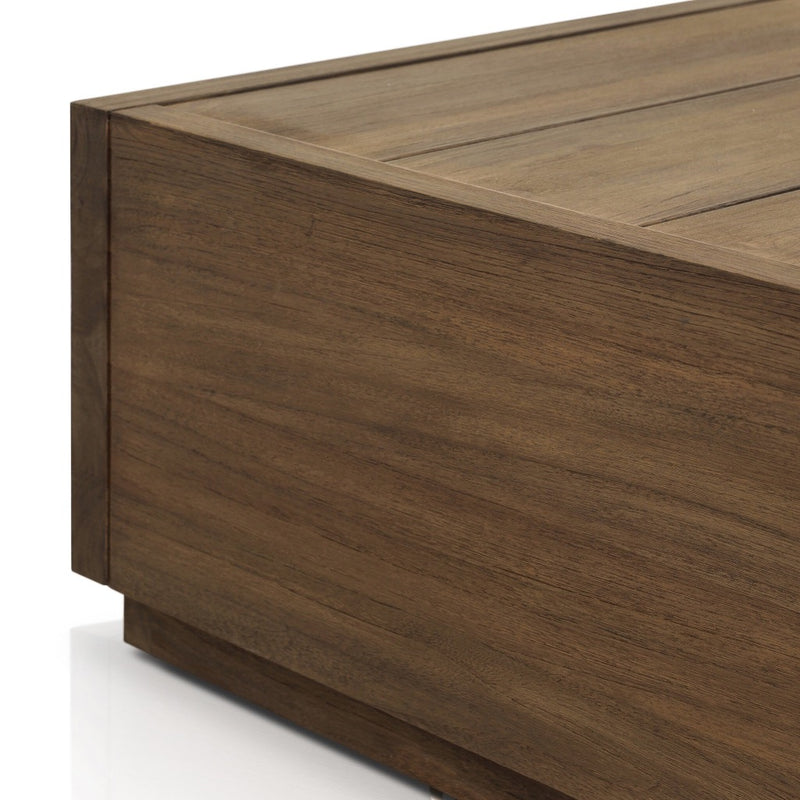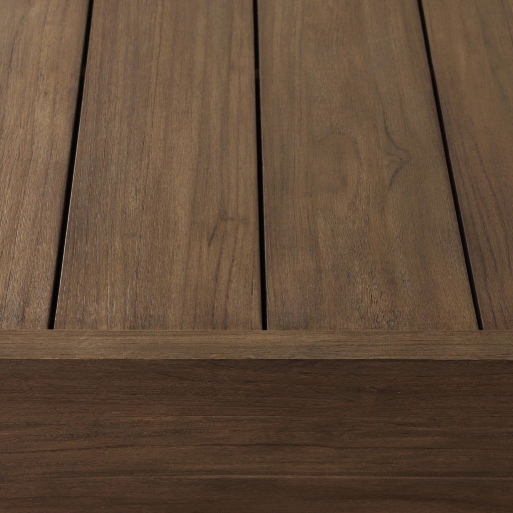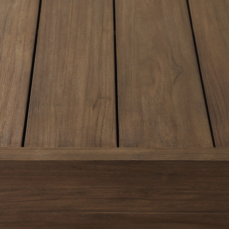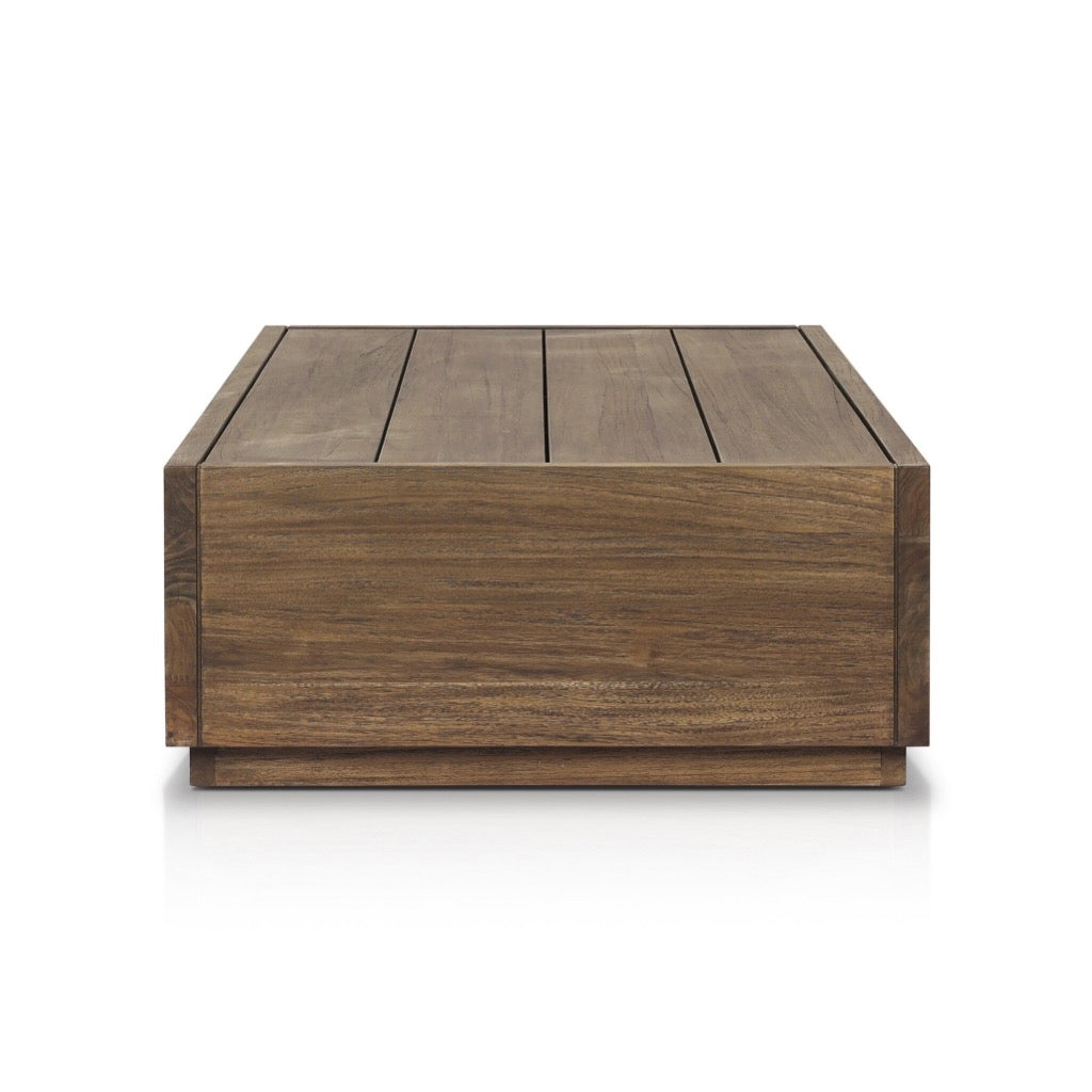 A simple plinth-style outdoor coffee table made of FSC®-certified teak, complemented with slatting on top to mix with any style — from modern to classic. Cover or store indoors during inclement weather and when not in use.