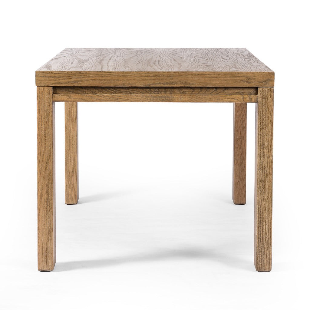 Angled legs place a modern twist on the timeless Parsons table. Light, neutral oak moves between styles and color palettes with ease.