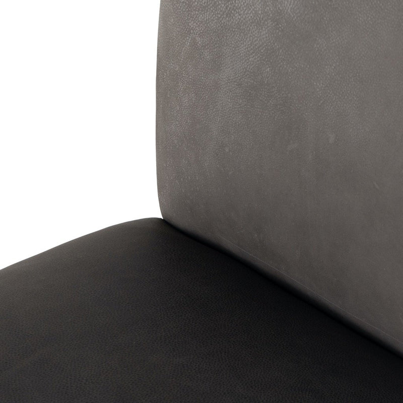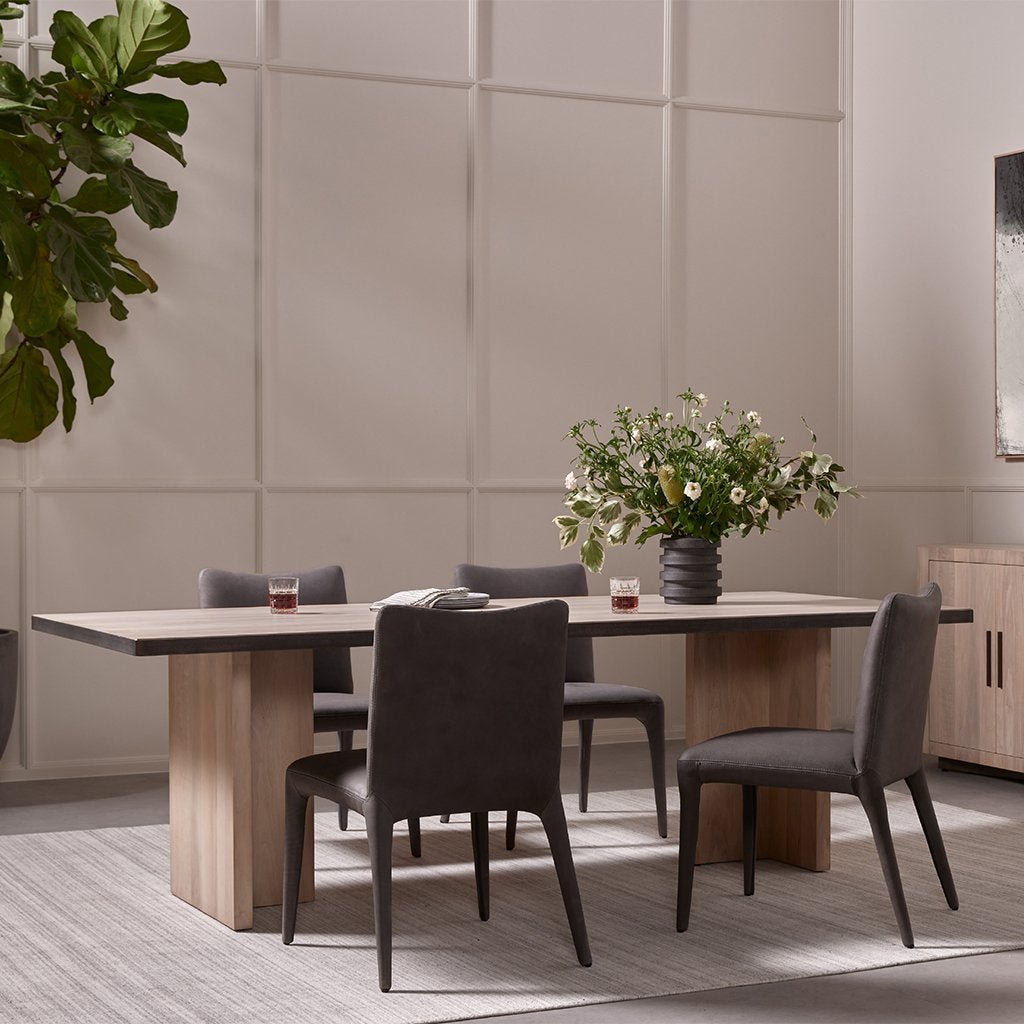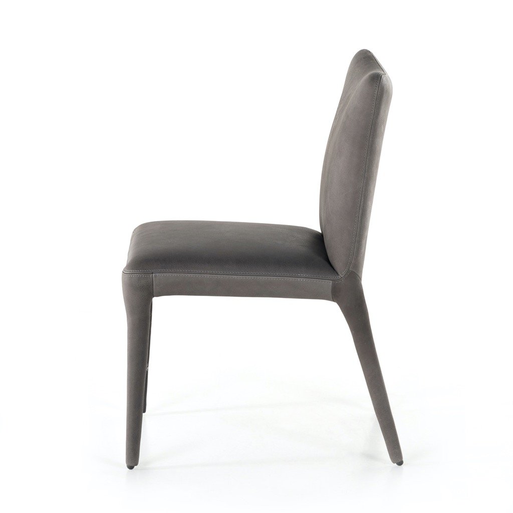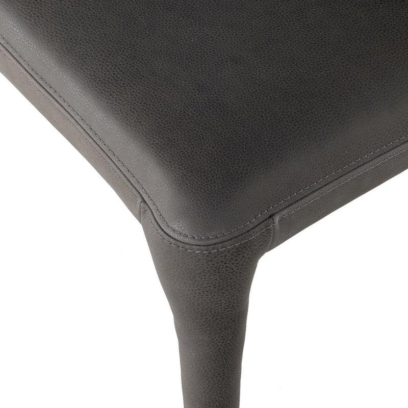 Shapely and sleek, with a scooped back and tapered legs, graphite top-grain leather brings total sophistication to the dining table.